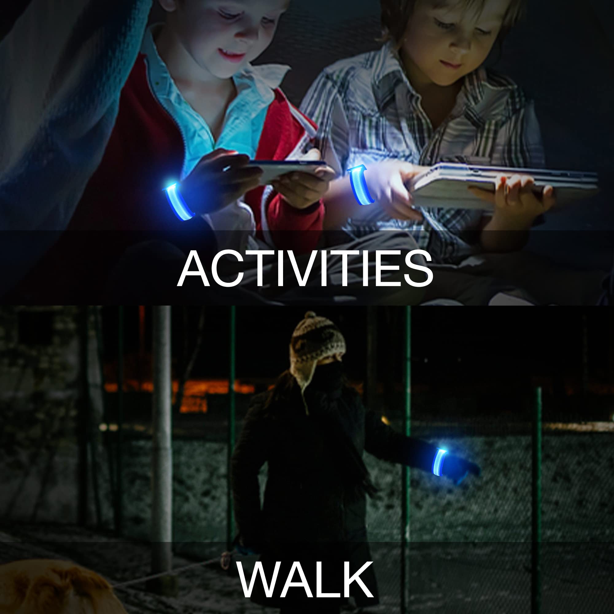 【Multi-Usages】:Nicely visible while walking, riding, running, or on a motorcycle at night. Secure enough that you don't have to worry about it flying off at higher rates of speed. Also perfect for dog collar when night walking. Great party supplies. Enough for you to share with your families and friends. Kids always love this light up bracelets. Age grading: 3 + years old