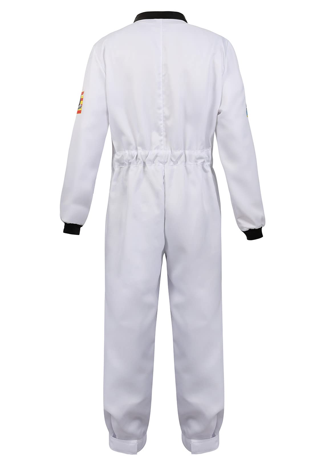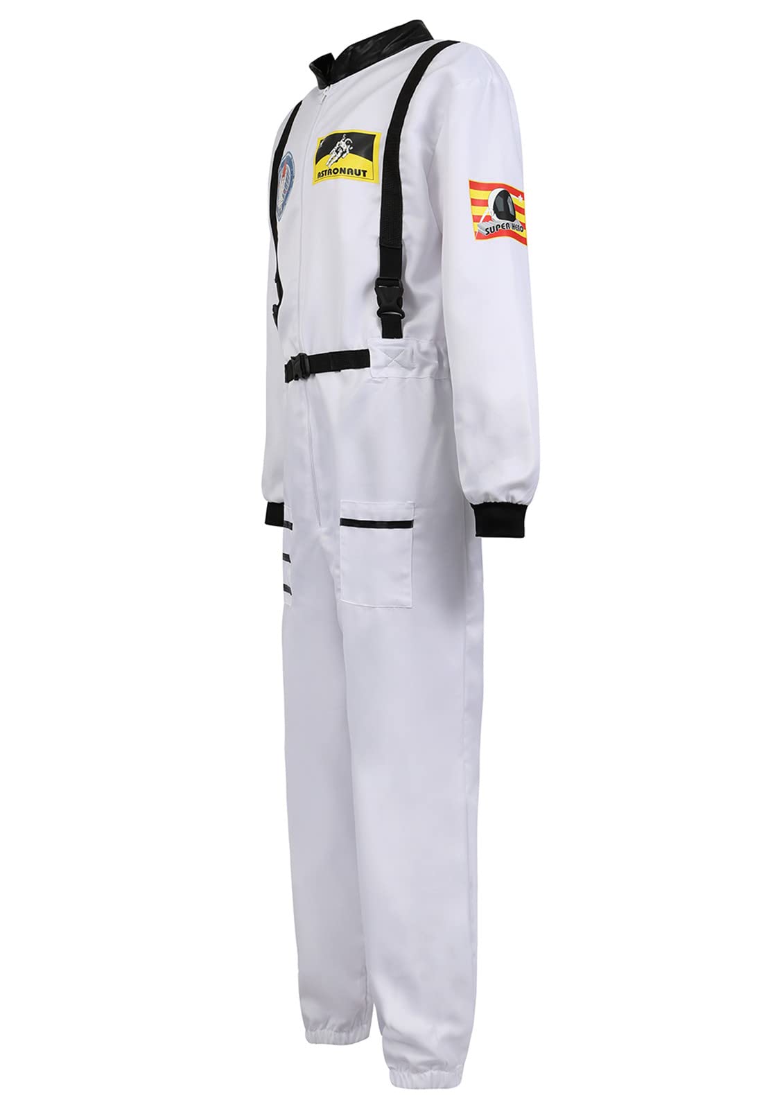Astronaut Costume Adult, Long-sleeve front zipper jumpsuit space outfit, appealing decorations like space pattern printing on chest and sleeves.