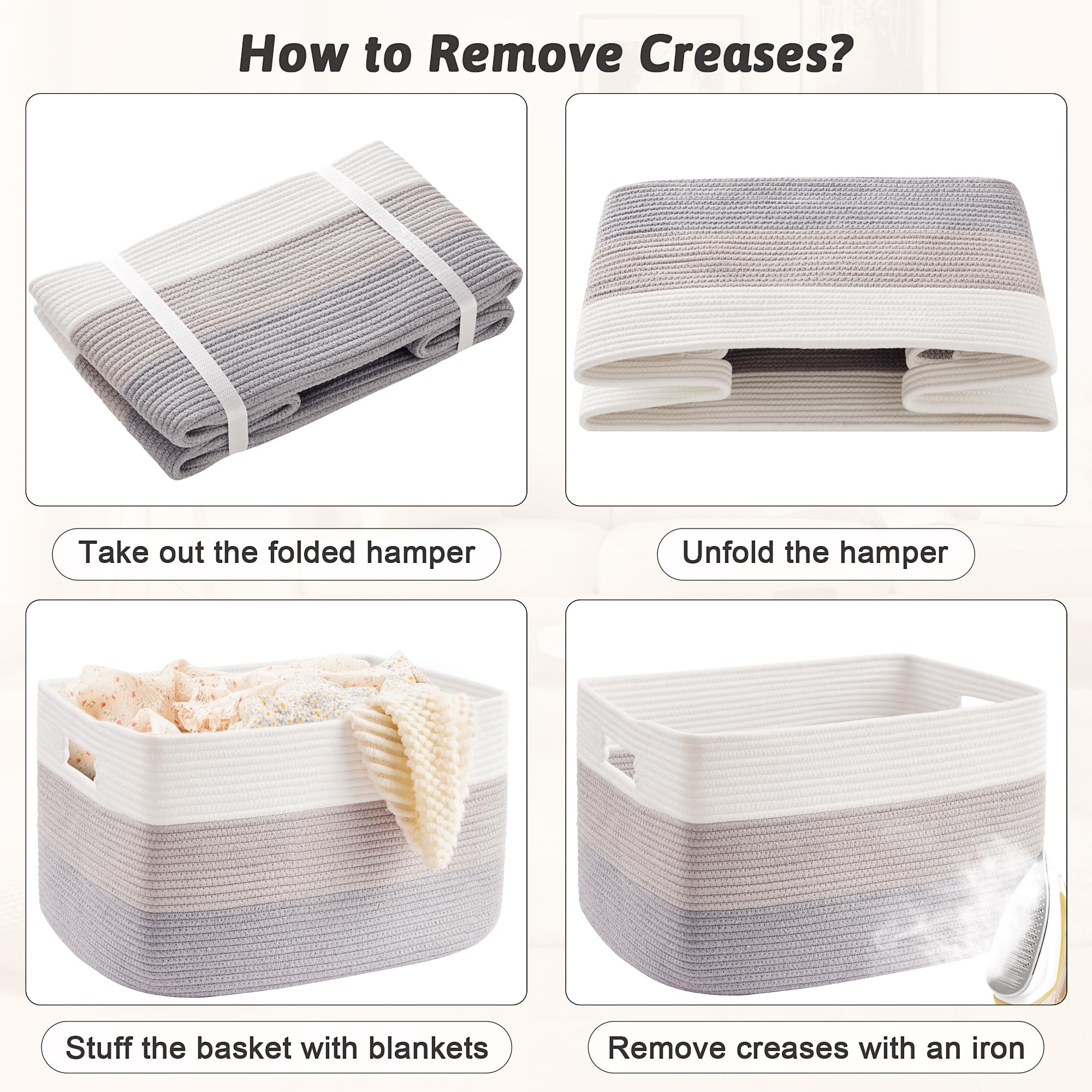 【Effortless Restoration】 Rectangular blanket baskets are more stable and easier to restore to their original shape after receiving a package. Simply fill the basket with pillows or blankets and iron repeatedly to speed up the gradual return of the basket to its original shape.