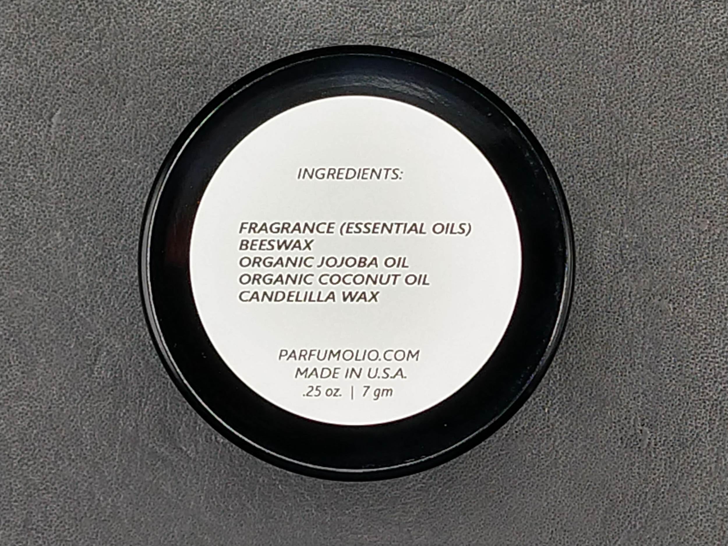 Organic Coconut Oil melts at skin temperature, allowing the balm to spread easily once in contact with skin. | Organic Jojoba Seed Oil leaves skin soft, making this balm do double duty as a perfume and moisturizer | Yellow Beeswax prevents rancidity and encourages the long-term release of scent. | Candelilla Wax hydrates skin and locks in moisture, aiding the above ingredients to stay on the skin.
