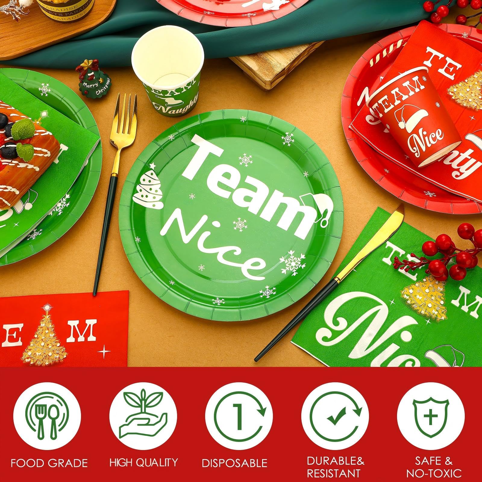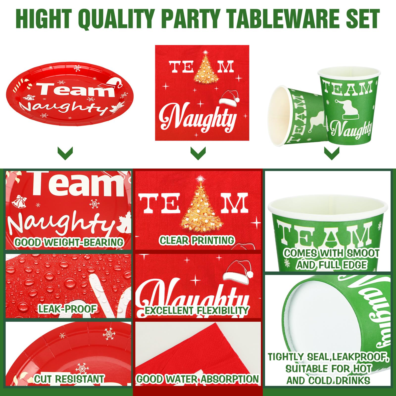 Team Naughty and Team Nice Design: these party supplies tableware set are designed with vibrant team naughty and team nice styles, vivid and delicate, which can make your party full of festive atmosphere and warm, leaving your guests deep impressions