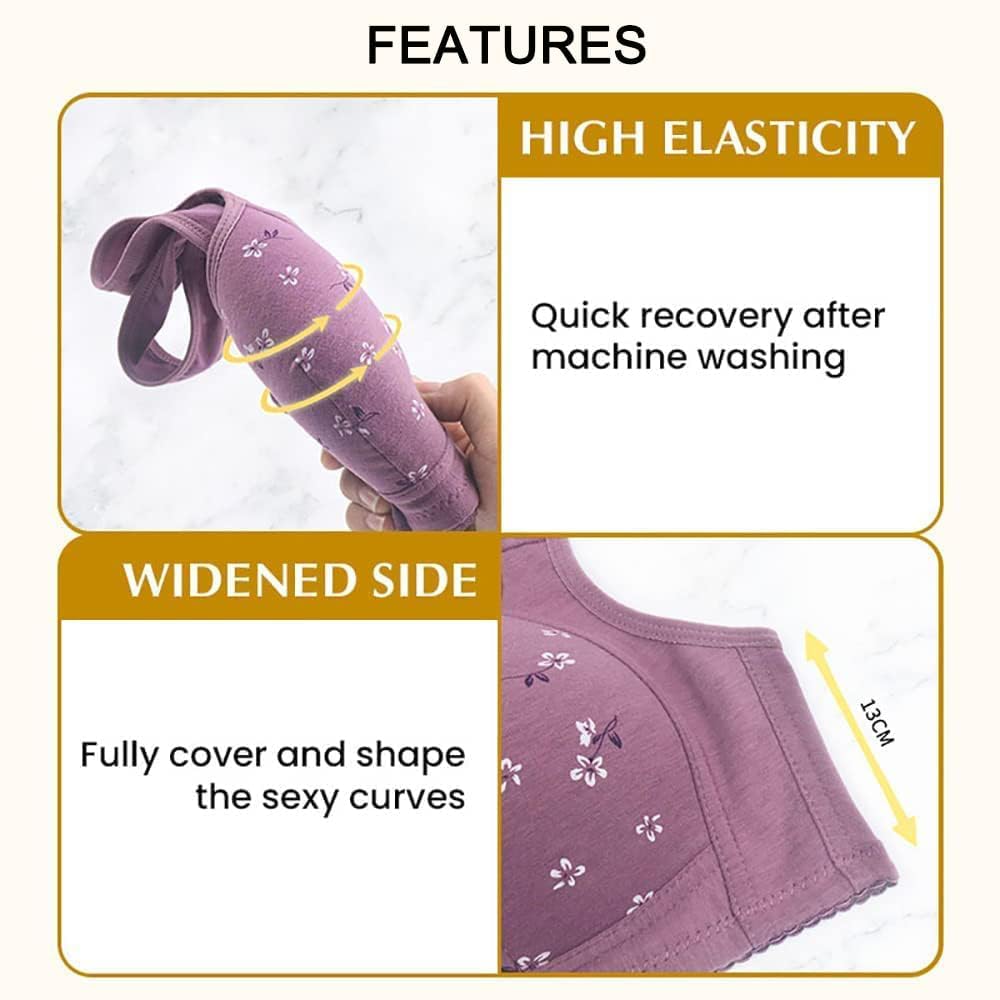 [Daisy Bra Front Closure]: Daisy bra with front buckle design makes it easy to put on and take off, simple and fast.Wirefree thin cups design with no underwire poking but gives enough support to lift the bust and outline a natural bust shape.