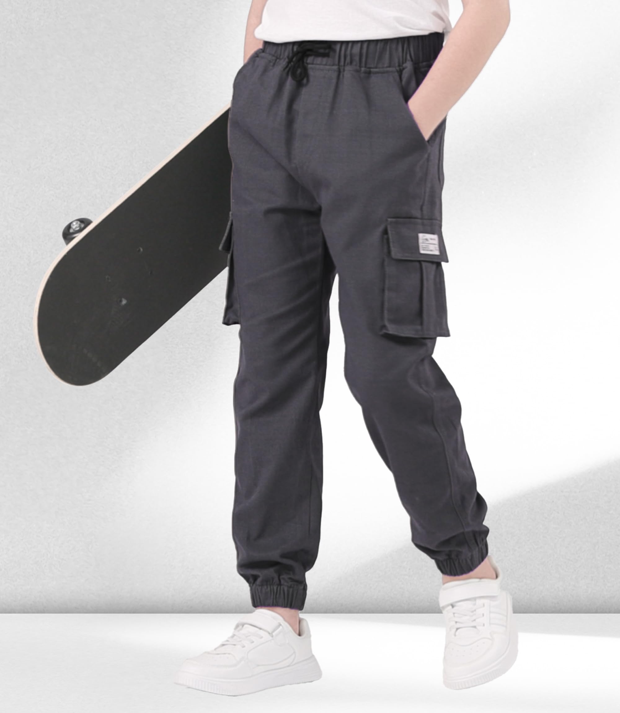 Kid cargo joggers bring versatility to his wardrobe, solid and camouflage can be paired with a variety of clothes.