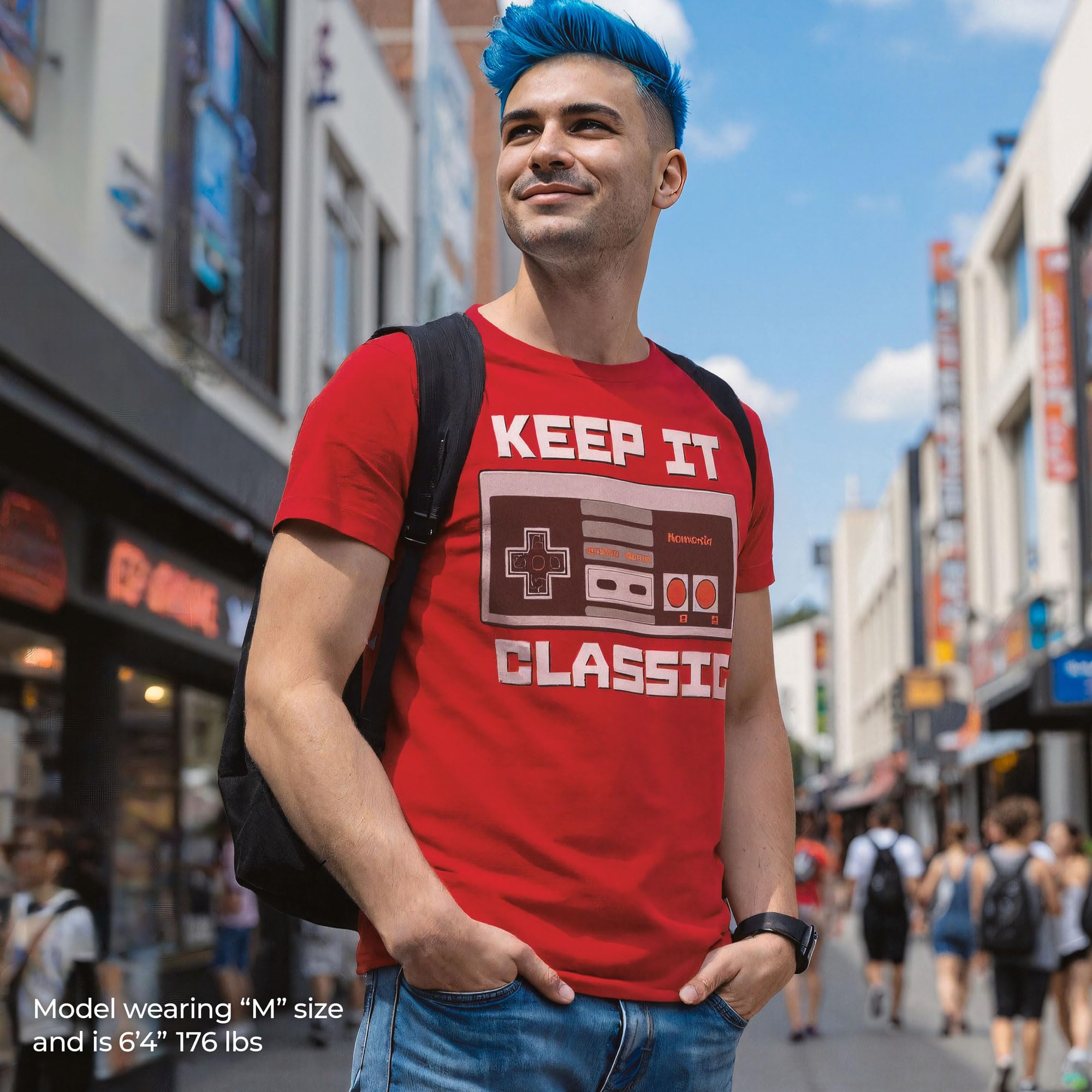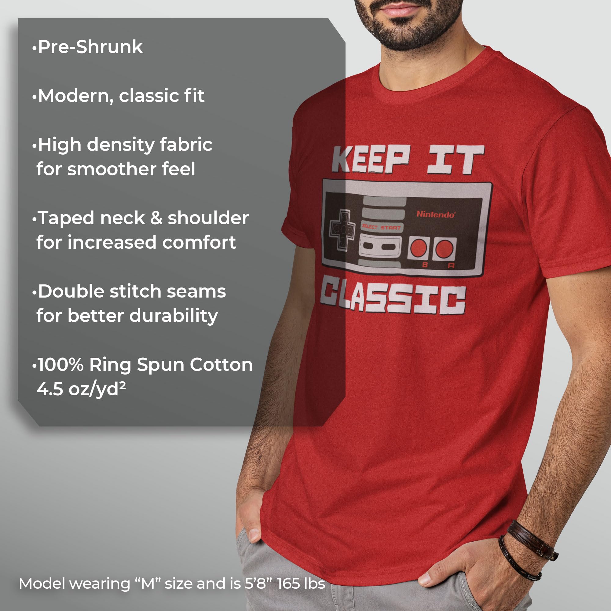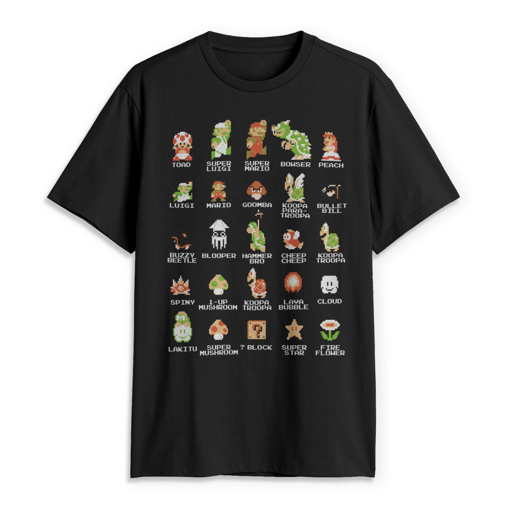 Short sleeve t-shirt, crew tee, slim fit, pre shrunk, made in USA, machine wash, fashion tee, Nintendo, Character, Gaming, Gamer, Vintage, Old School