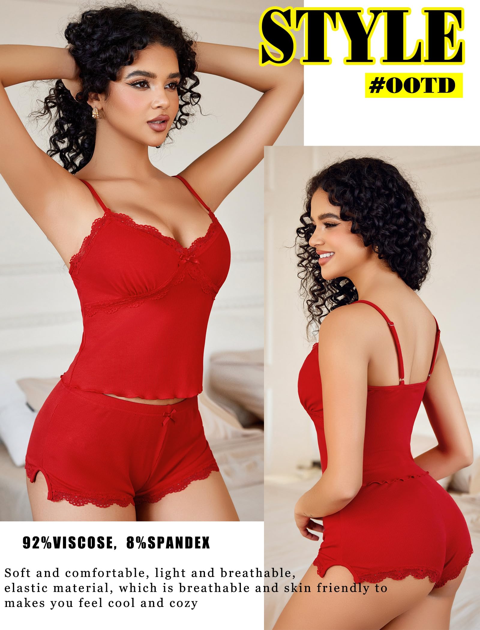 【Sexy Pajamas for Women】Sexy pajama set for women is made of 92% Viscose and 8% Spandex. Silky to the touch, super soft, sexy, breathable and comfortable, skin friendly, making you sleep well