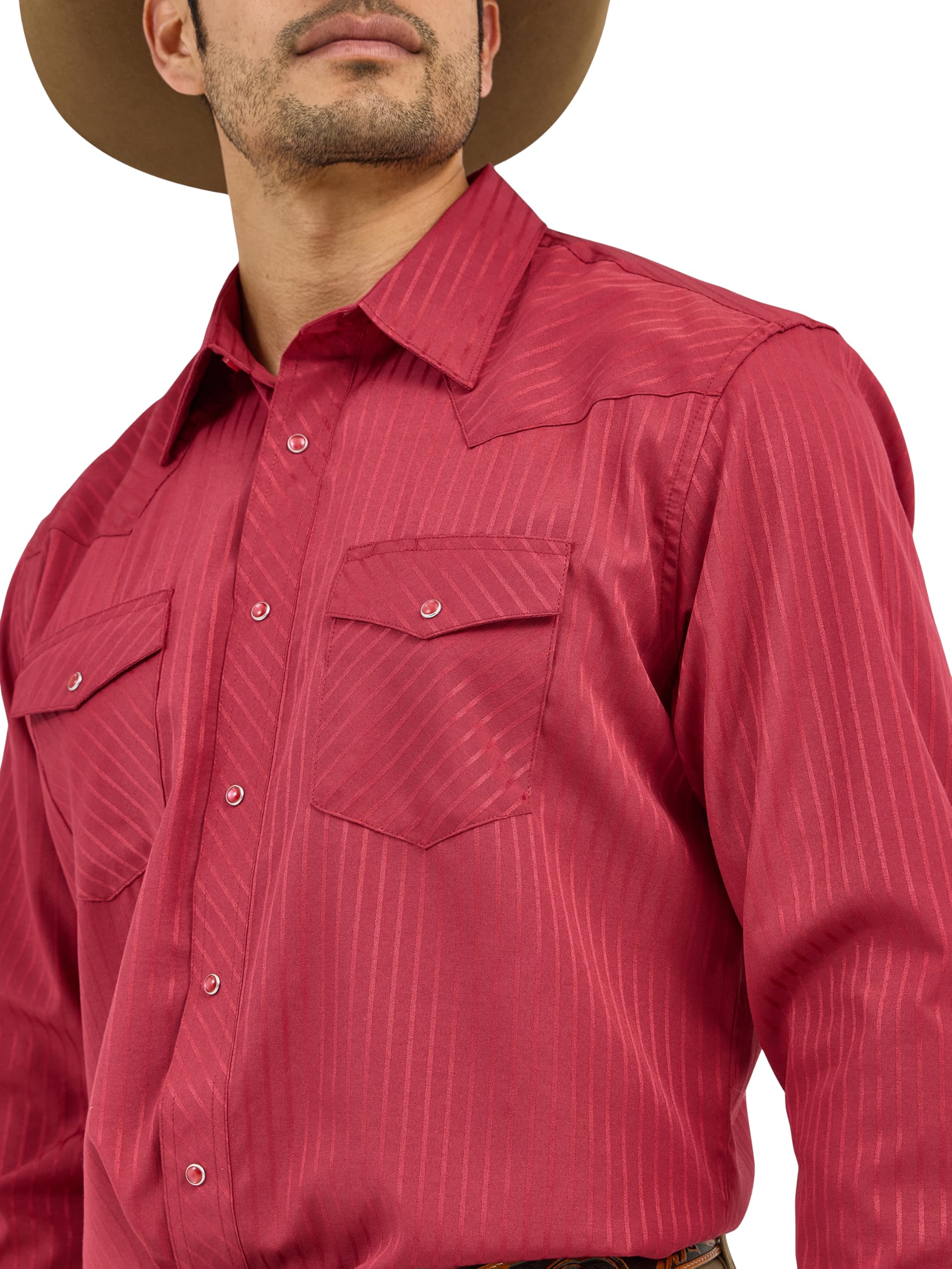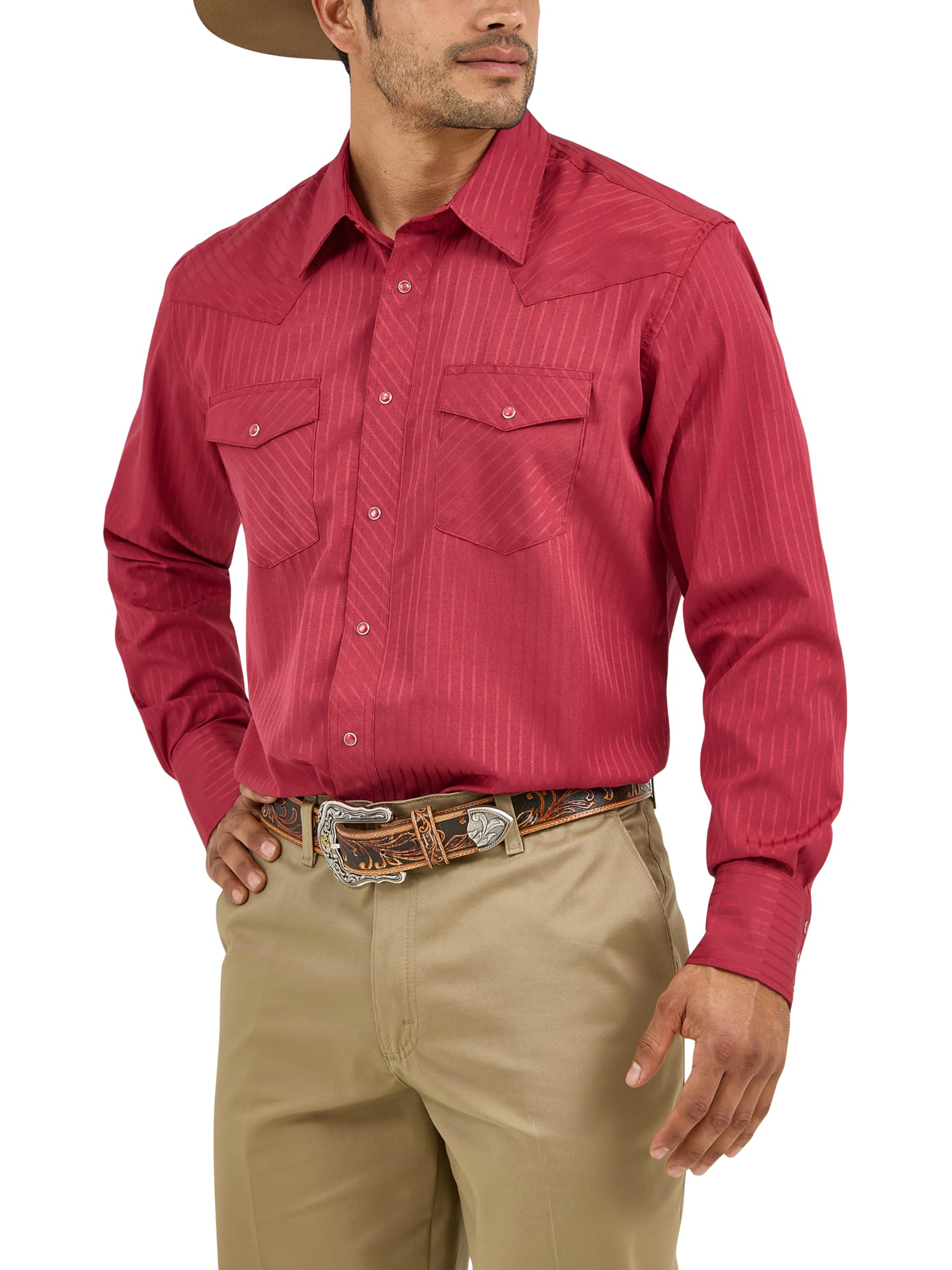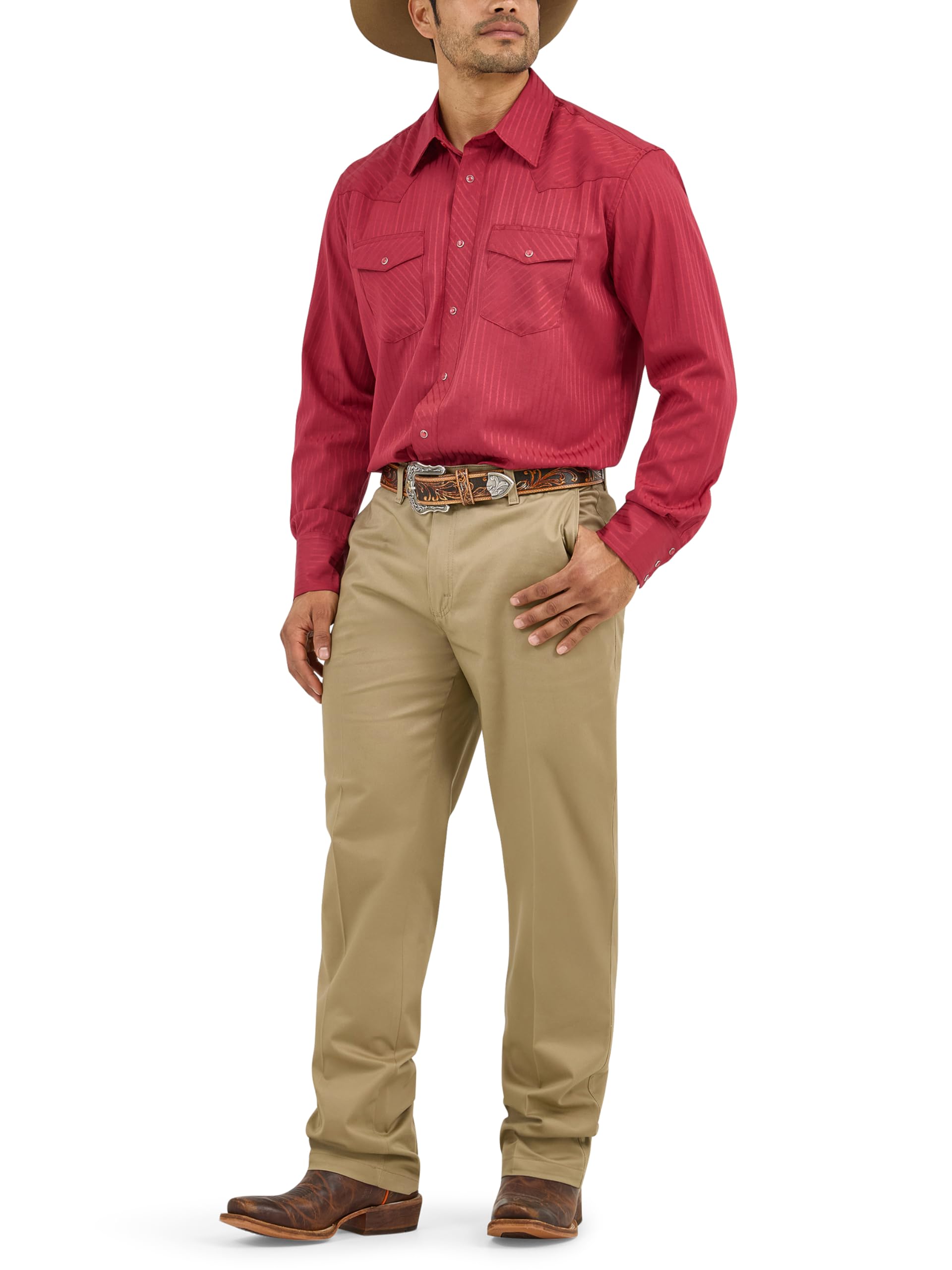 Description Since 1947, Wrangler has maintained a relentless commitment to quality apparel built to fit your life. Wrangler fills your closet with authentic snap shirts, tees, jackets and authentic western denim that keep you comfortable in true western style. Our shirts feature iconic details such as pearl snaps, pointed yokes, ‘W’ stitching on the pockets, and spread collars. Jeans come in 100% heavyweight denim or with a bit of stretch for extra comfort and feature a Wrangler patch, W stitching on pockets and classic 5 pocket styling. Crafted with care, our western line is made for men who start their day before the sun comes up and won’t stop working until the job is done. This is Wrangler, made for you.