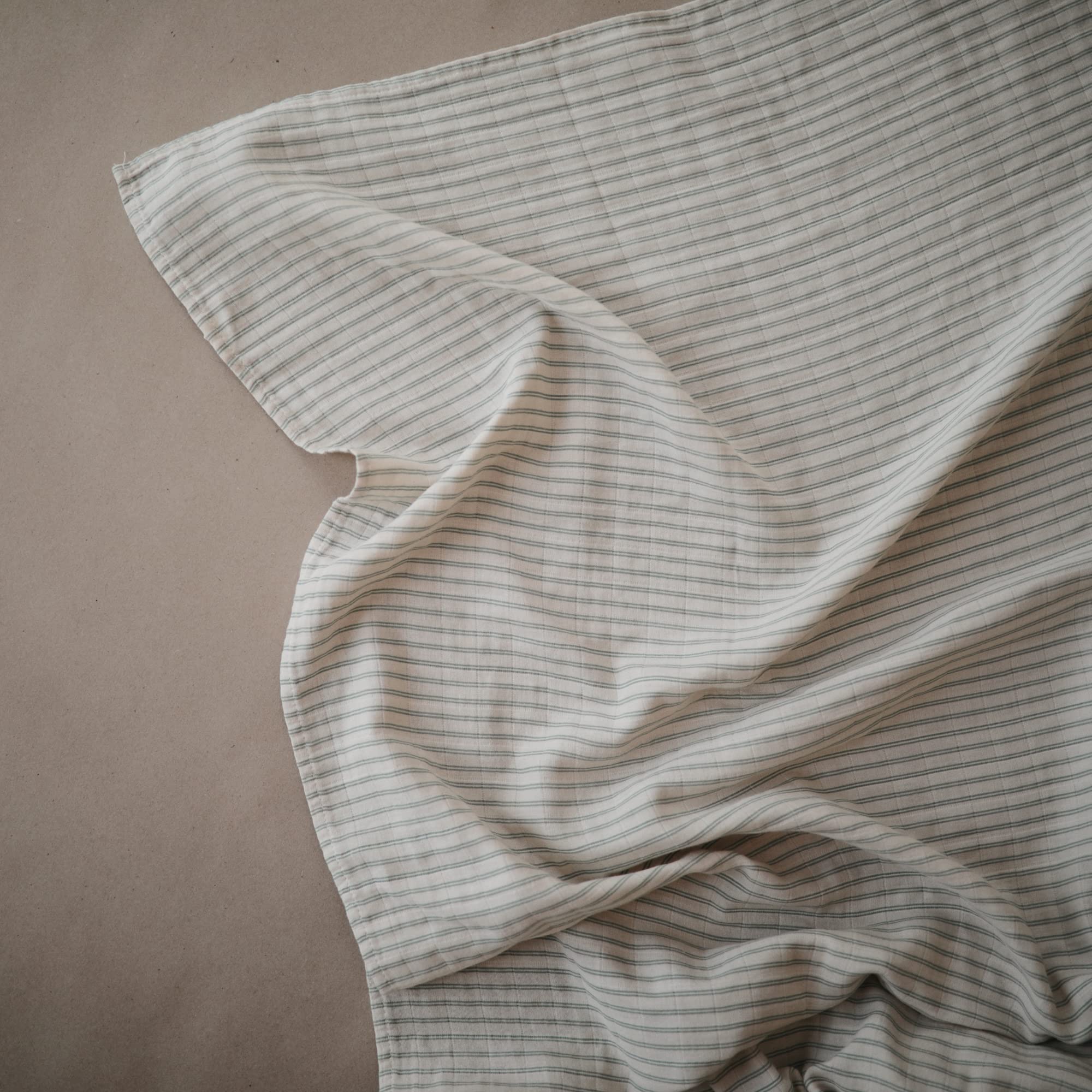 Nursery Essential: Nap time just got so much more cozy with the Mushie muslin baby swaddle - ideal for swaddling, nursing, and cuddling your baby.