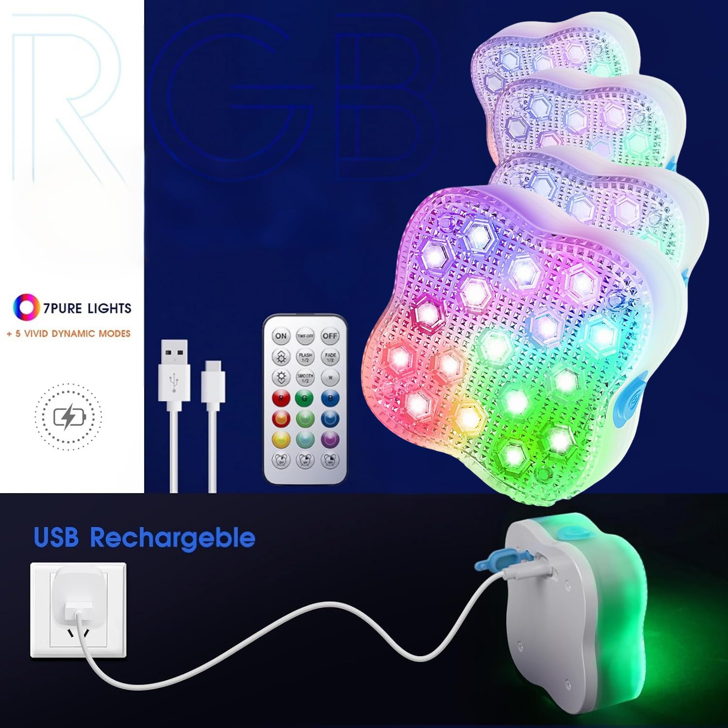 【Rechargeable Pool Lights】The submersible pool lights are rechargeable, easily charged by a universal USB-C cable. 2800mAh lithium polymer battery can work 60-180 hours after 4 hours full charged.