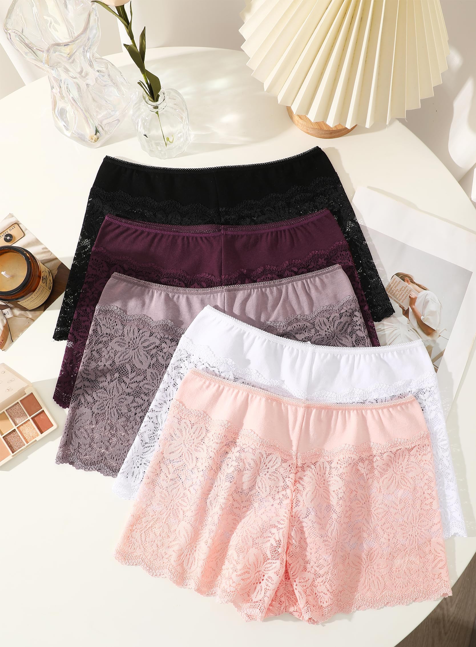 Stretchy Cheeky Shorts Underwear Women Pack:Our 5 pack lace underwear for women that fit true-to-size. Women lace underwear you can wear all day long and 5 fashion-forward lace boyshorts in assorted colors, perfect for mixing & matching with bras. Fashionful colors,Boost your confidence with every wear. These ladies underwear panties can be worn under skirts, shorts, jeans, etc. to meet all daily needs.