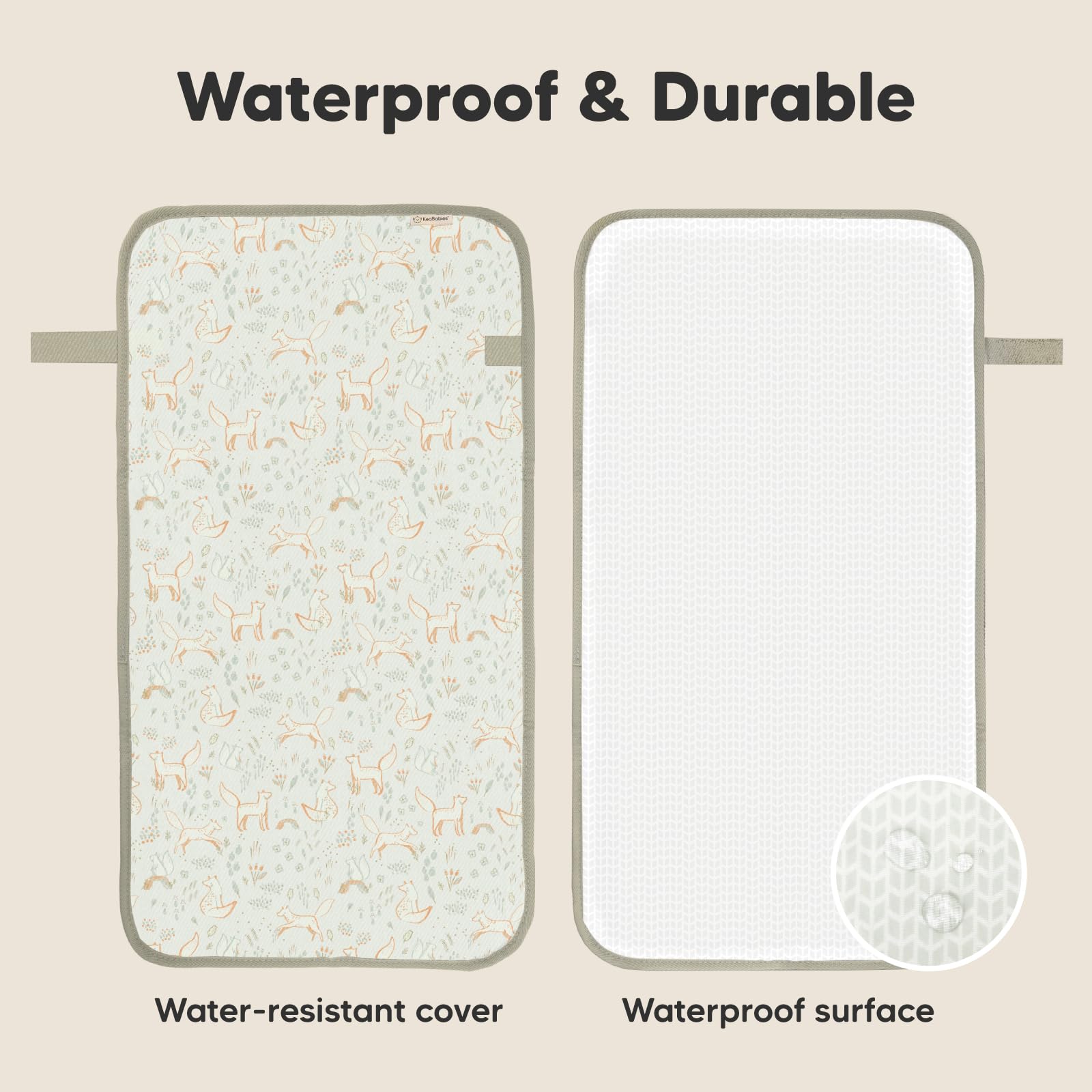 Waterproof Diaper Changing Mat - We use high quality, waterproof and smooth diaper changing surface for easy spot cleaning while on the go. Simply wipe clean with wet wipes or sanitizer after each use.
