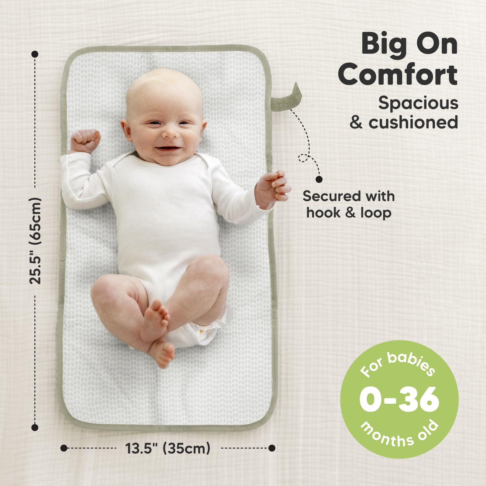 Compact Folded Size - Our Portable Changing Pad is foldable into a clutch-sized 6.8" by 8.5" | 17cm by 22cm pad, taking up minimal space in your diaper bag. Perfect for on-the-go parents, it's an ideal travel changing pad for a day out!