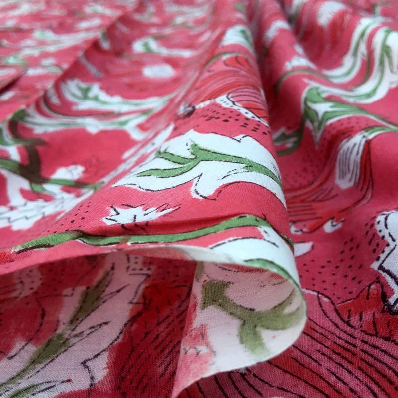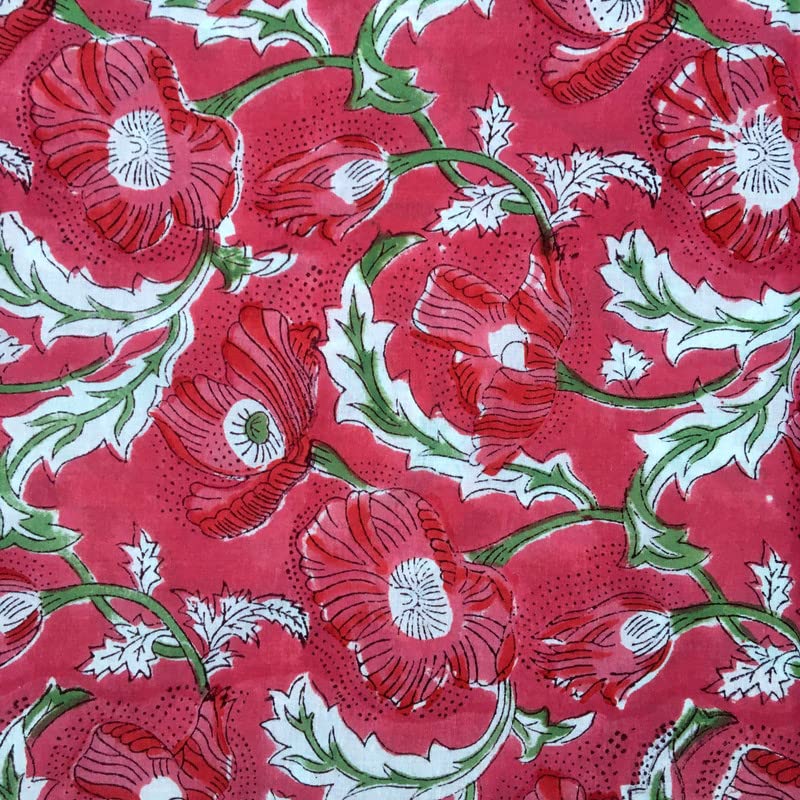 FABRIC WIDTH: 44" And LENGTH: 3 Yards. , Color: Red. 100% Soft Cotton medium weight, Indian Wood Hand block fabric.