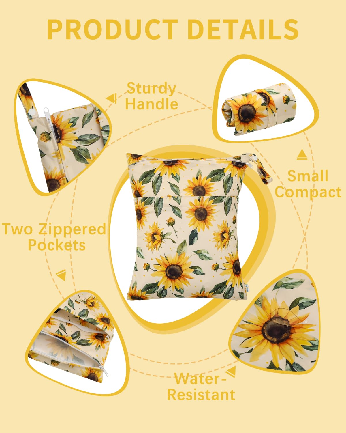 Double-Pocket Design with Snap Handle: Each wet bag contains two pockets, which comes with two zip closures to ensure that nothing will drop out of the bag and better to keep the clean and dirty items separately. With the snap handle design, you can unbutton the haddle and easily hang the bag on the stroller or door knobs, towel rod ect. anywhere you want.