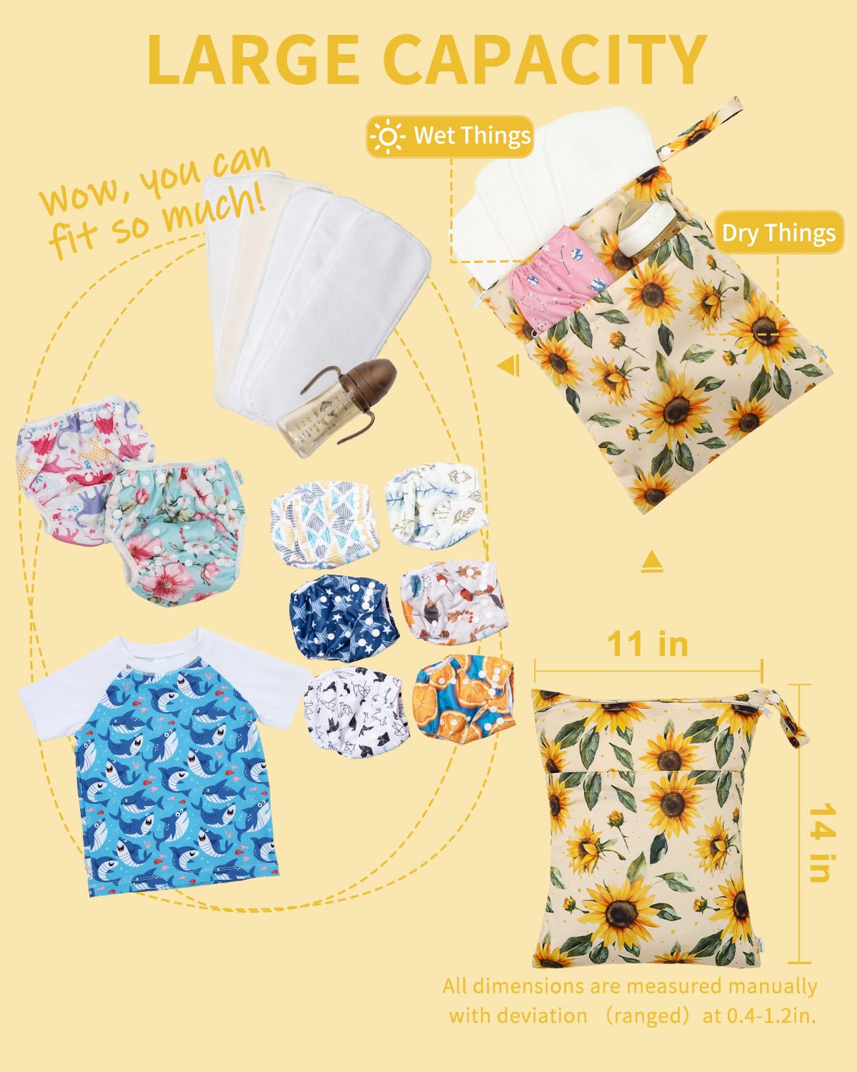 Premium Quality & Water-Resistant: babygoal wet bags are of high quality. The outer layer of wet bags are made of waterproof polyester and breathable TPU material. They are safe to preserve baby products, as they are completely free of dioxins, sodium polyacrylate and other chemicals, or contain any BPA, Phthalate, Latex or Lead as well.