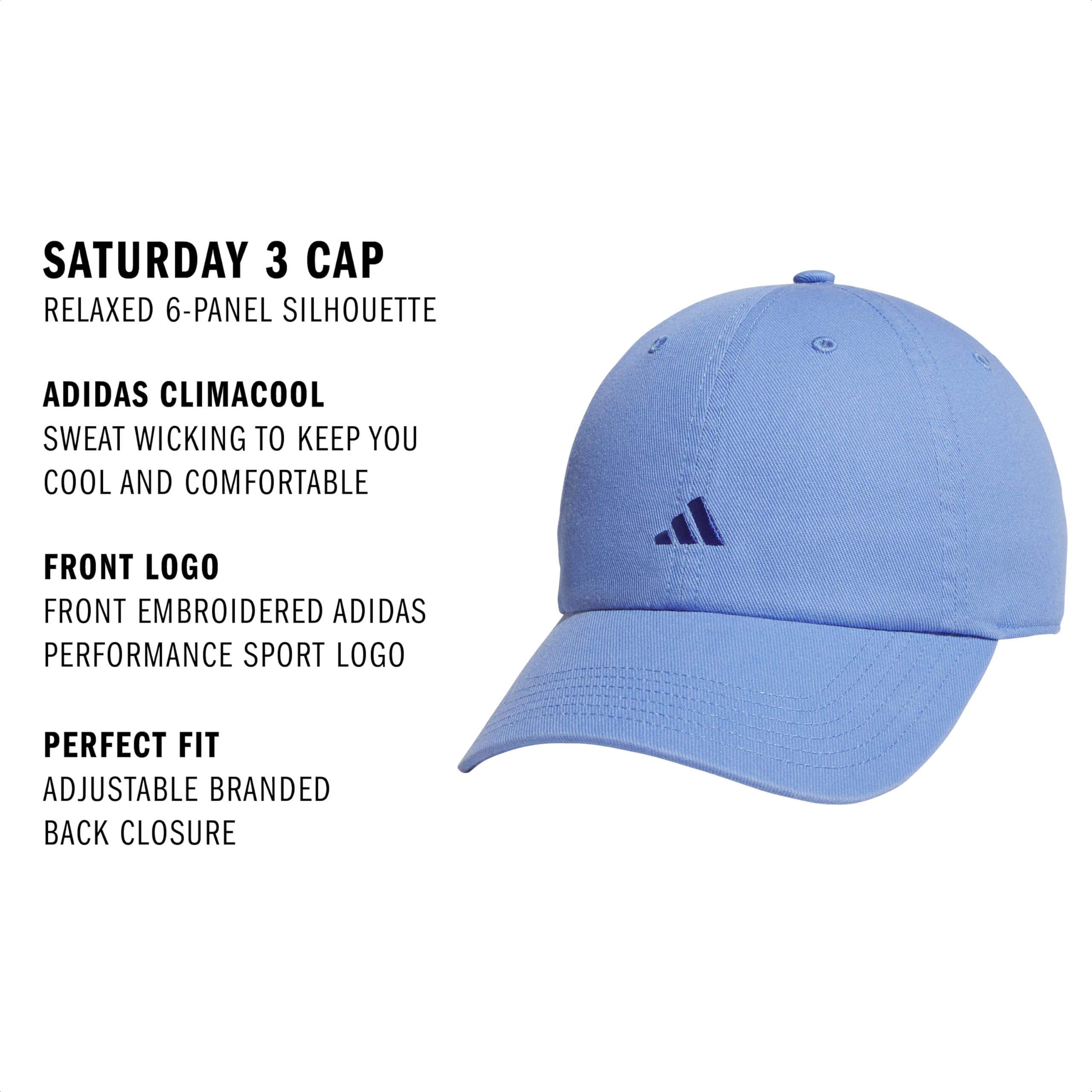 Description Put the finishing touch on your look in this sporty yet versatile hat for women. Made with sweat-wicking, quick-drying material and adidas Climacool, it keeps your head feeling cool and dry when you're on the go. It has a relaxed six-panel crown and an adjustable strap for locking in the perfect fit.