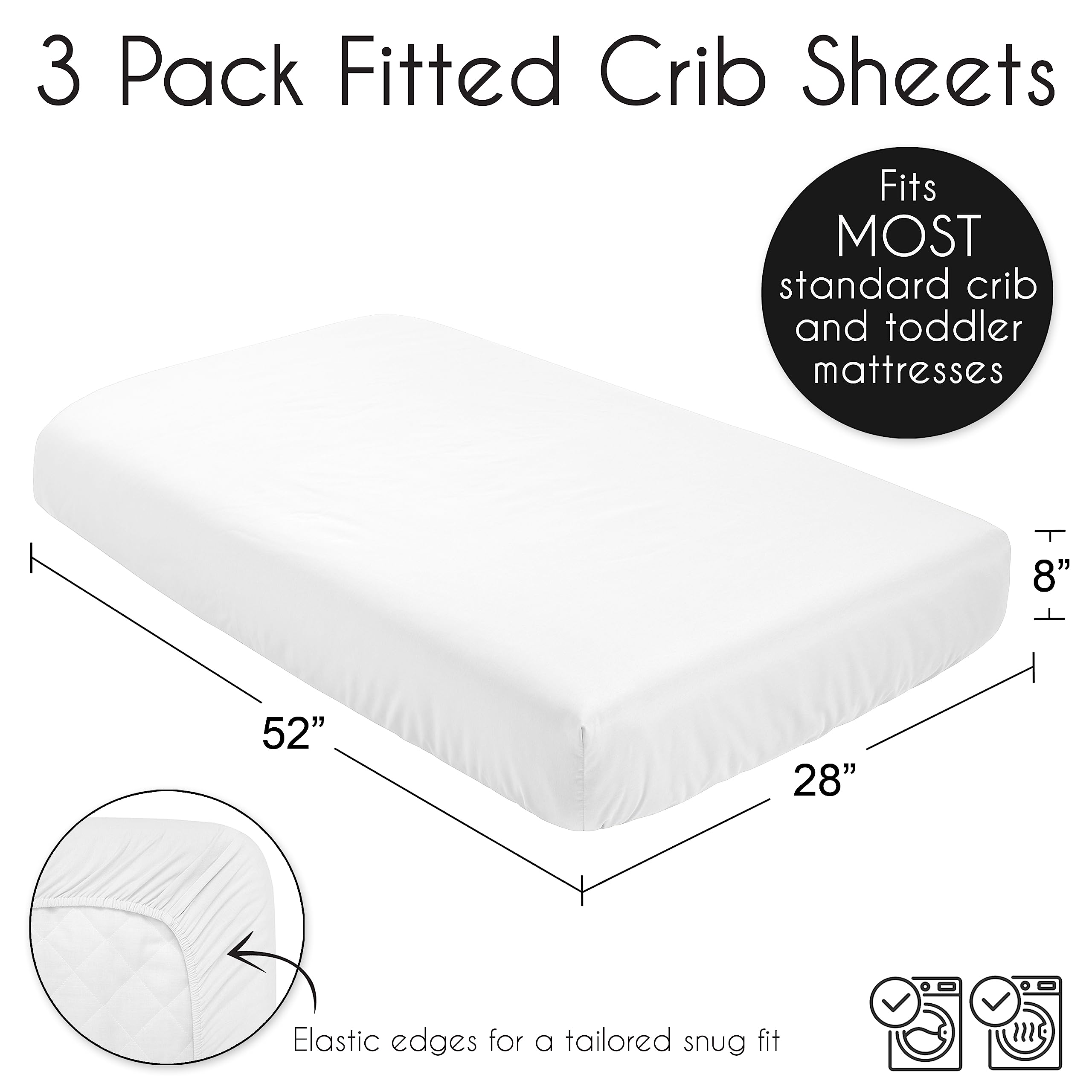 SAFE & DURABLE: Sweet Jojo Designs is a proud Baby Safety Alliance member and rigorously tests products to meet or exceed CPSC safety standards. Our breathable crib sheets are designed with busy parents in mind. Quick to change, easy machine washable and tumble dry on low. The high quality stitching and fabric ensure long-lasting use and will hold up wash after wash. Use one crib sheet in your newborns bed and have spares nearby to swap in between washes & to be prepared if an accident happens.