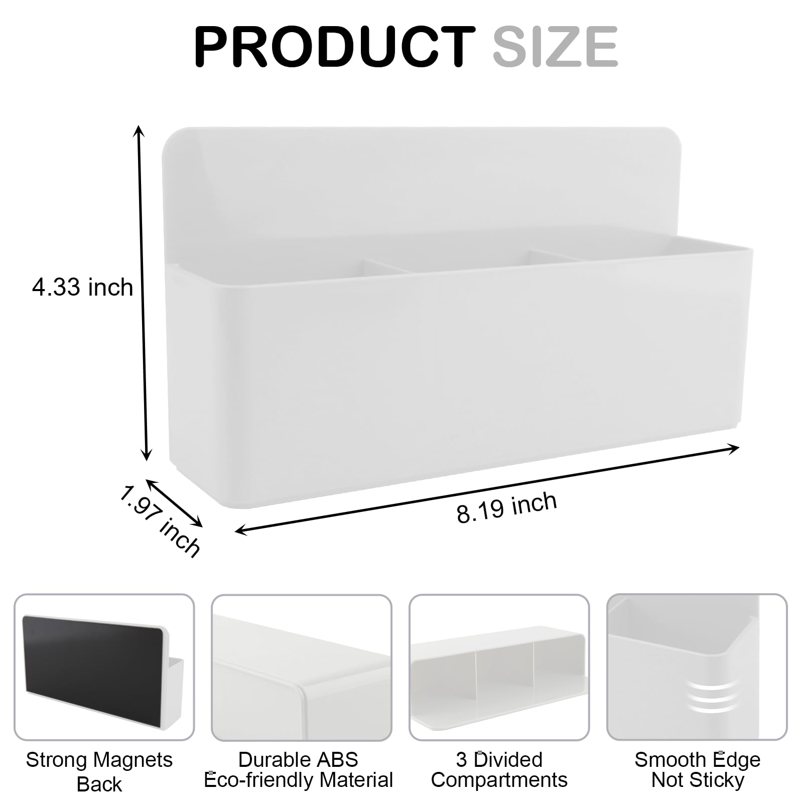 Upgraded Magnetic Pen Holder:Magnetic marker holder adopts divider design,there are 2 divider.Magnetic dry erase marker holder's dimensions is 8.27L x 2.05W x 4.33H inches(Long Style),you can choose your storage Organizer of different sizes as you like.