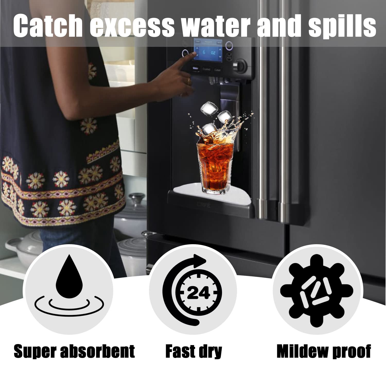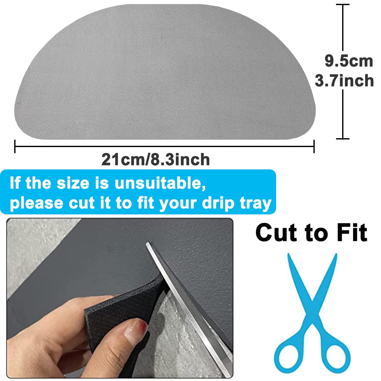 【Cut to Fit】The size of the fridge absorbent pad is 8.3 x 3.1 inches which can fit most refrigerator water trays. If the size is unsuitable, you can use scissors to cut the drip catcher tray to fit your refrigerator.