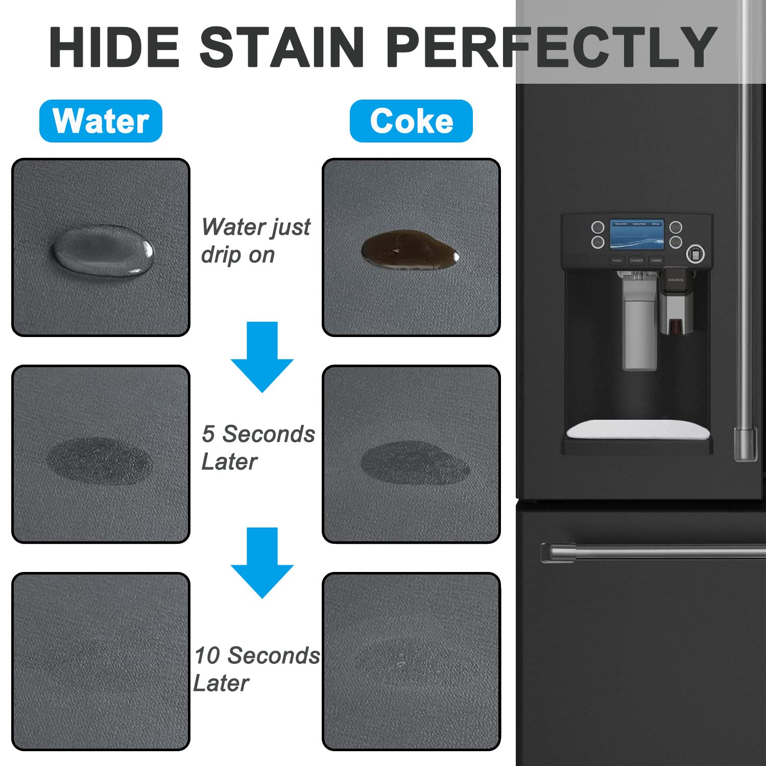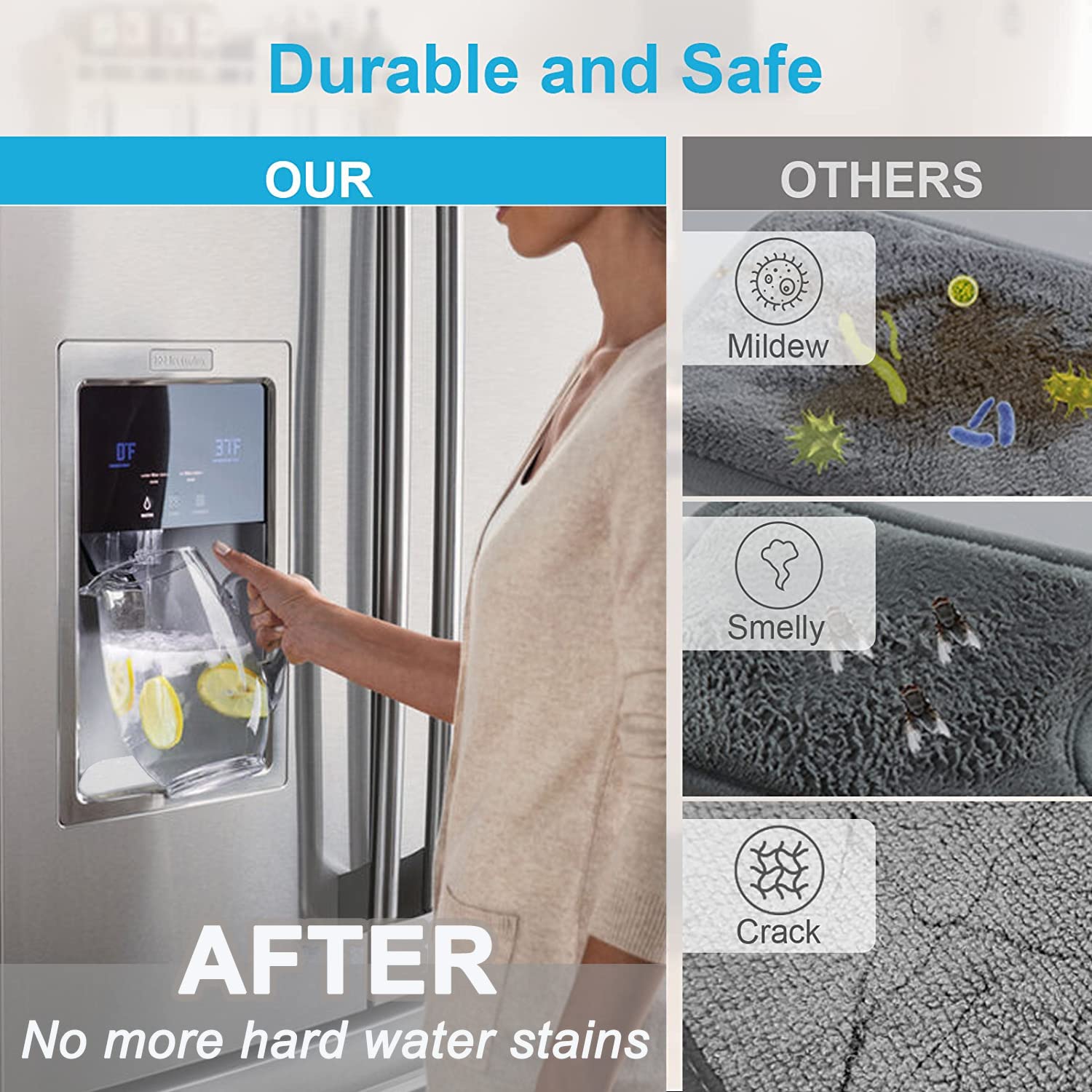 【Anti-slip Design】The bottom of refrigerator drip trays is designed with anti-slip rubber, so the fridge water catcher mat can stay in place when opening or closing the fridge door.