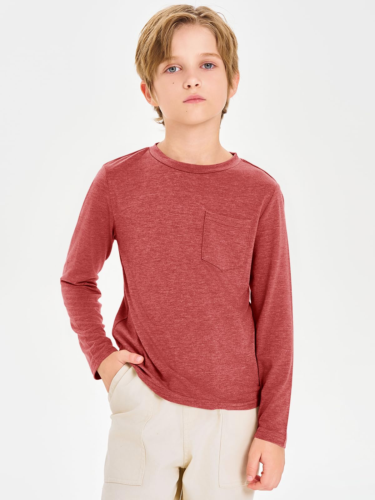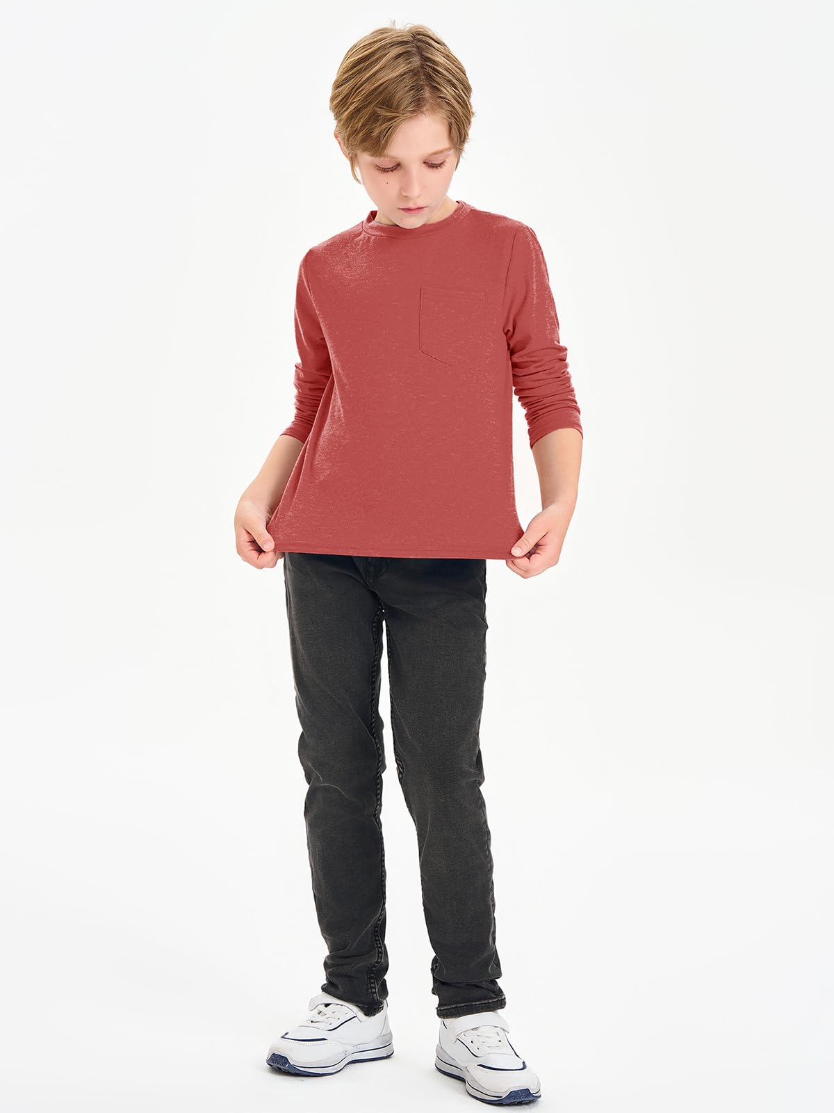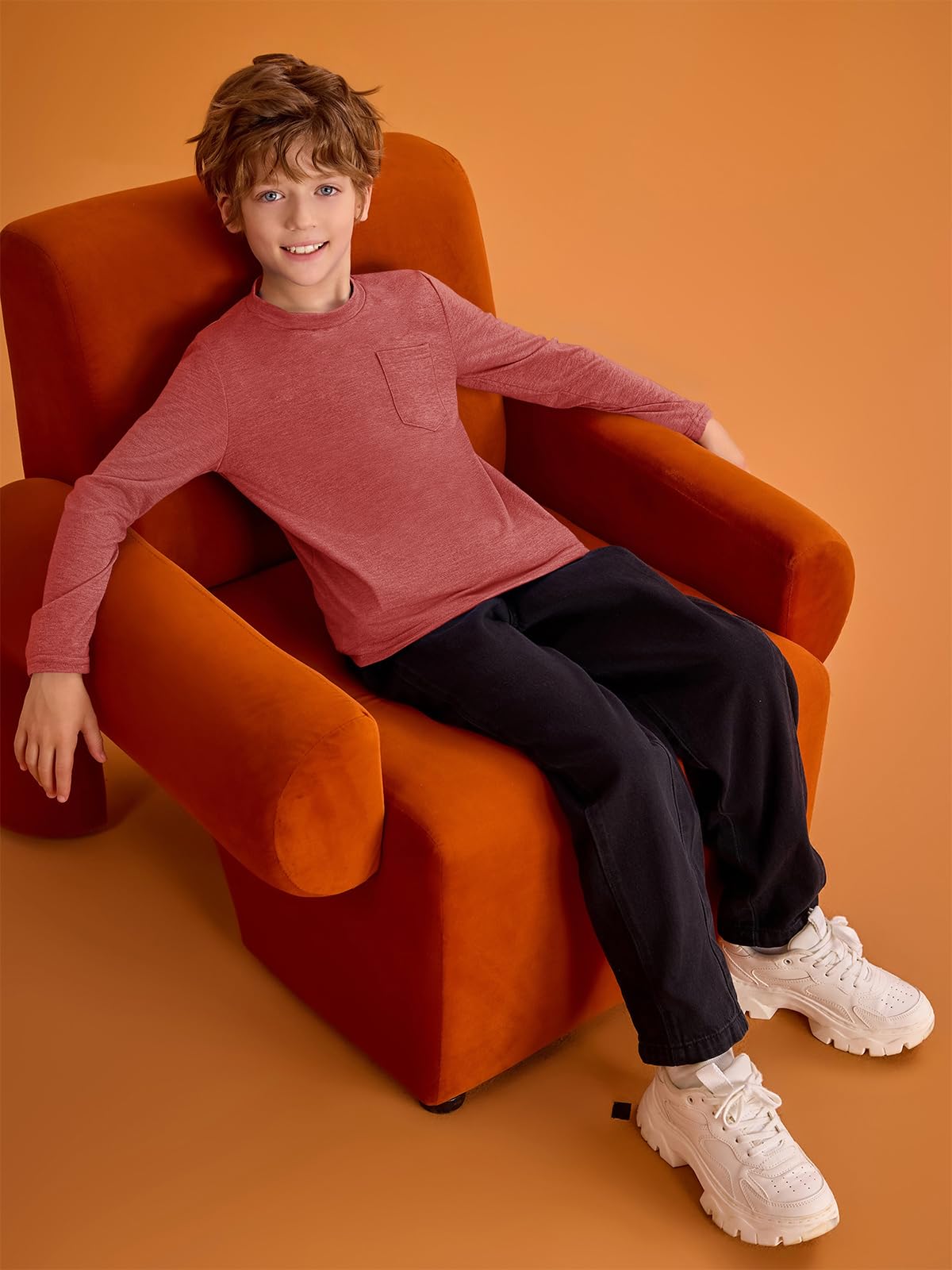 Design: Boys fall t-shirt, long sleeve shirts, basic tees with chest pocket, classic round neck and regular length, it's a good choice for your kids.The loose fit provides a comfortable fit for ease of wear and movement. Available in a range of solid colors, they offer a clean, versatile look that easily matches any bottom, making them a wardrobe staple for boys