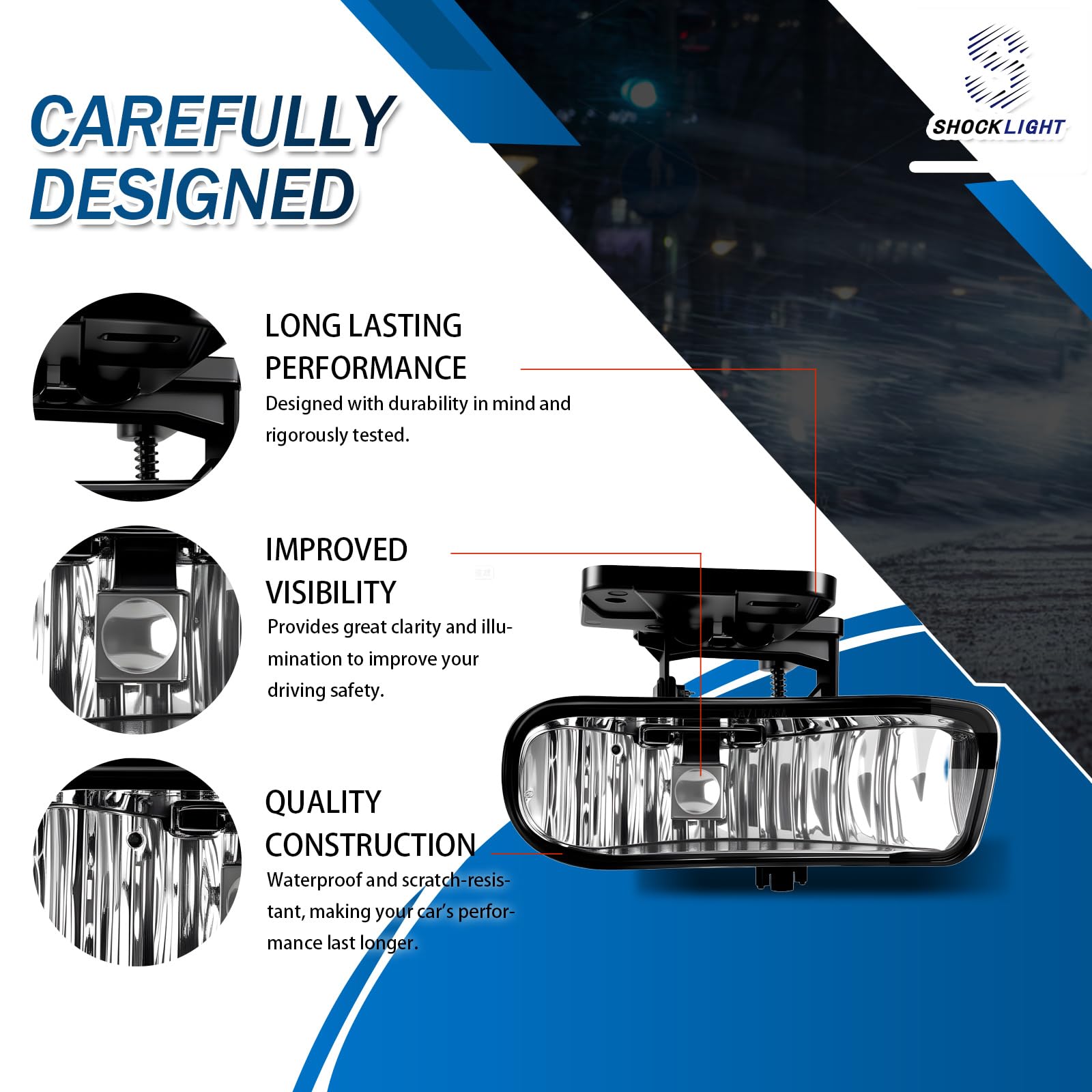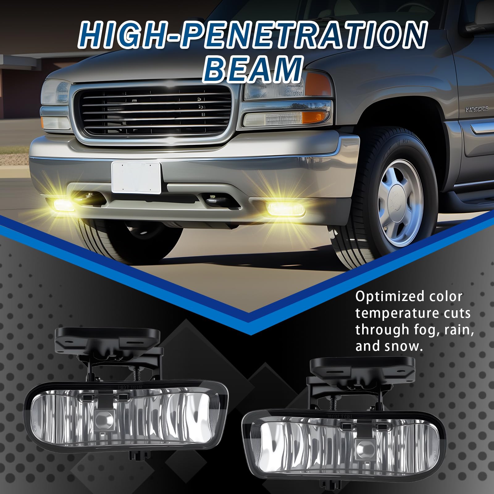【Fitment】These fog lights are compatible with 2000 2001 2002 2003 2004 2005 2006 GMC Yukon, 1999 2000 2001 2002 GMC Sierra. Please double check the fitment before your purchase to make sure you get the correct part.