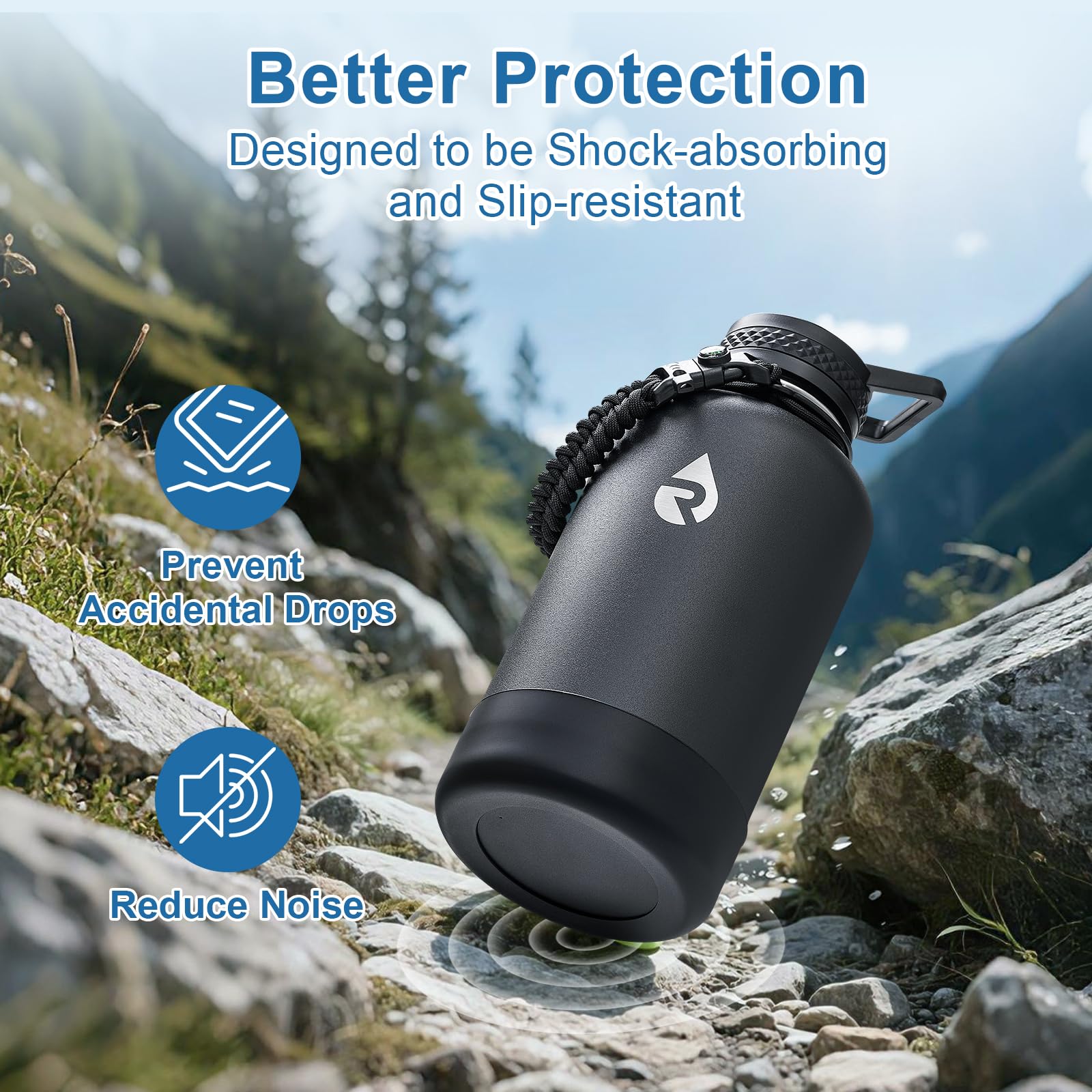 Silicone water bottle boot is designed to be shock-absorbing and slip-resistant, with the silicone material ensuring quiet landings in case of accidental drops