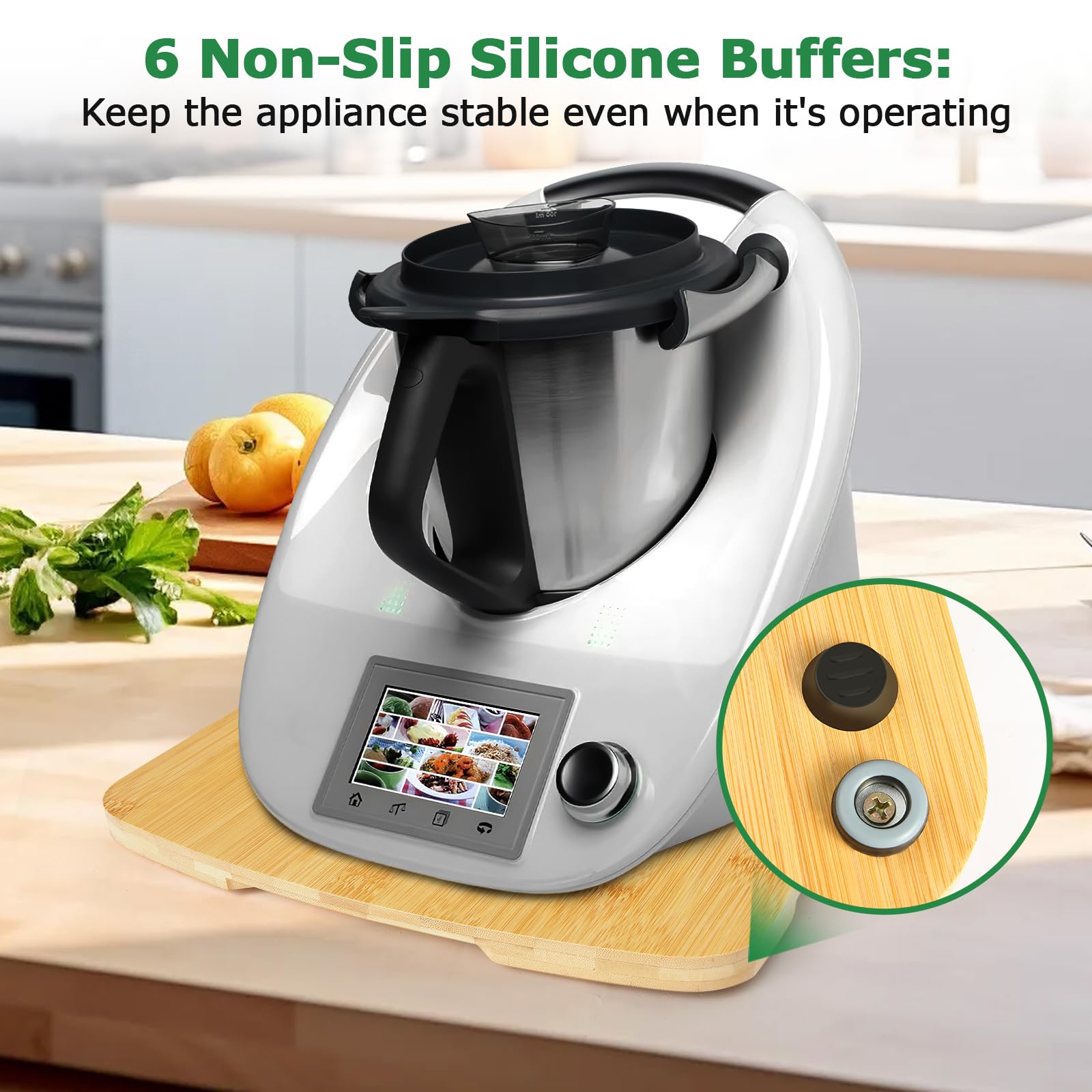【non-slip silicone buffers】With this kitchen aid mixers accessories Keep the appliance stable even when it's operating. Sliding Board It streamlines the cooking process and adds an extra layer of safety to your kitchen.With this Thermomix accessory, working in the kitchen becomes even more comfortable and enjoyable.