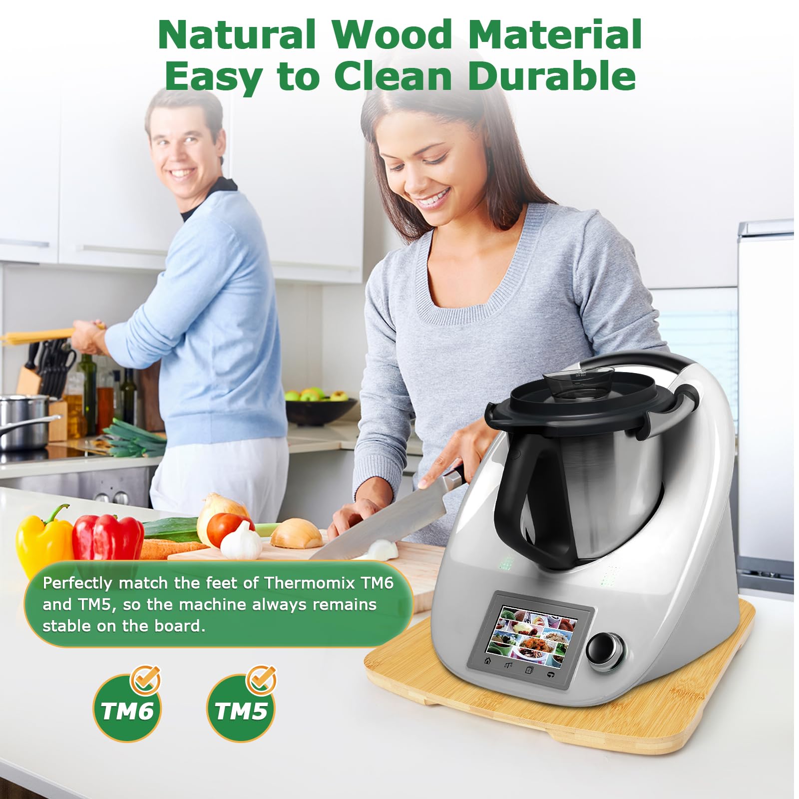 【Accessory for Thermomix】Sliding Board kitchenaid accessories The shape matches the Thermomix very well. The three round recesses on the board correspond to the three feet of TM6 or TM5.Easy to Clean,Simply wipe the smooth surface gently with a cloth.