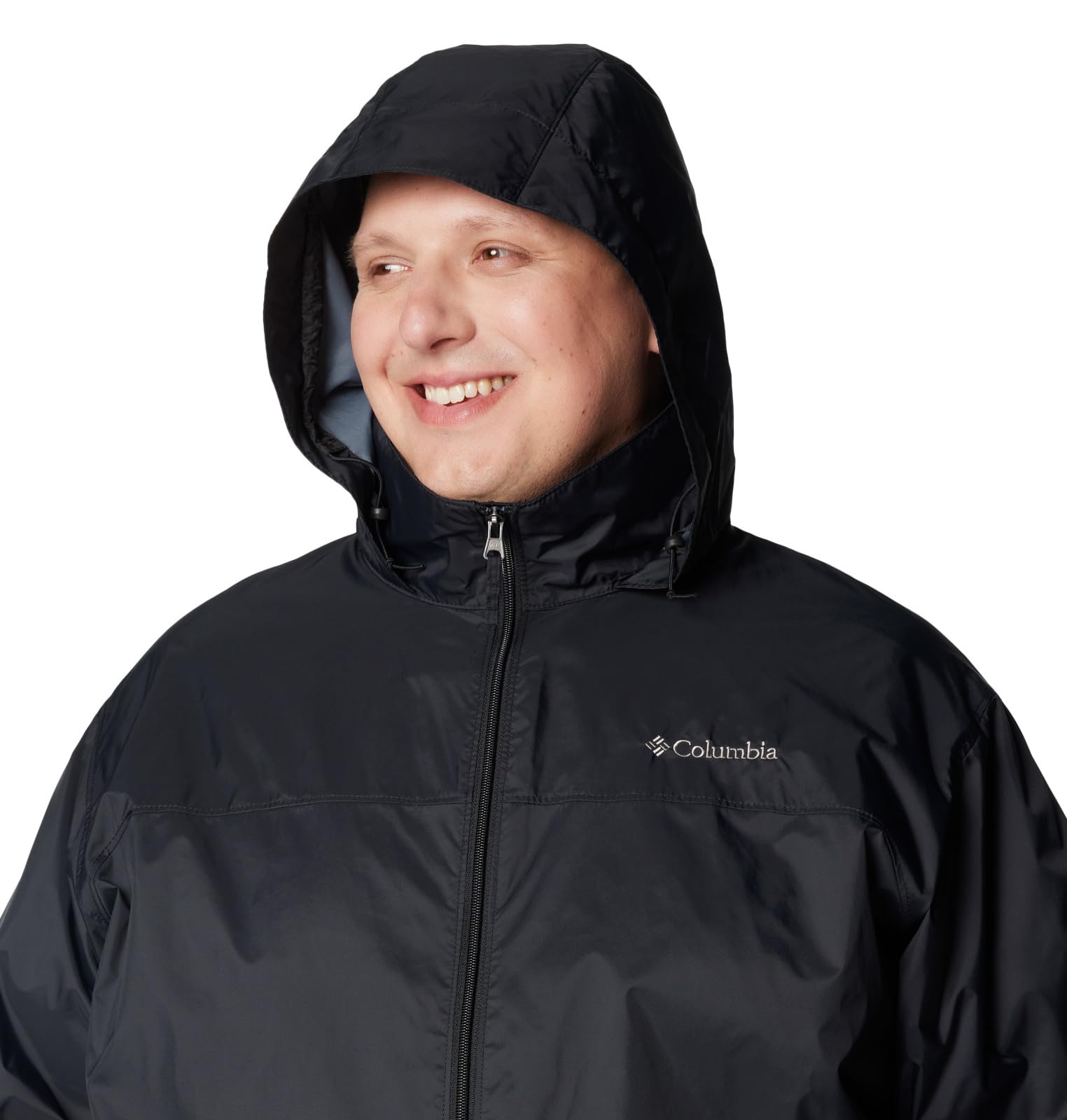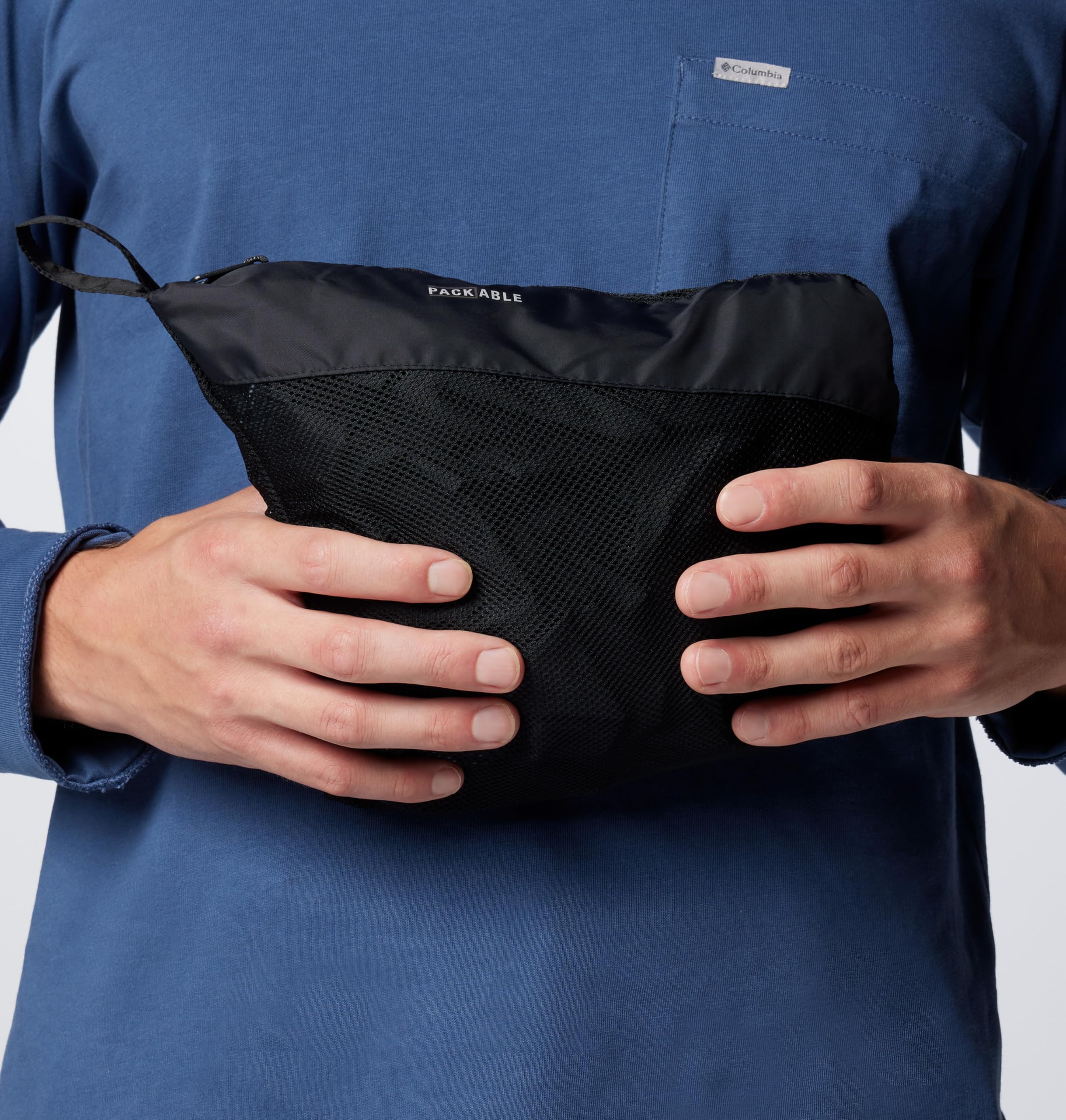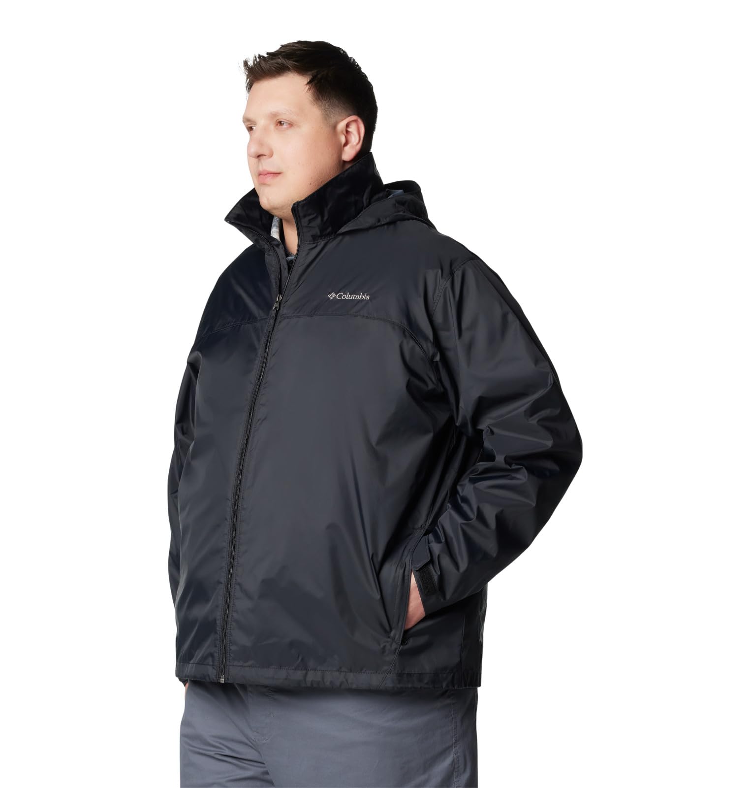 Description Stay dry under stormy skies with this packable, lightweight, waterproof Columbia men’s jacket. It has a stow-away hood and stuffs down easily into its own pocket for storage. Columbia offers this jacket in multiple colors and sizes. Regular fit.