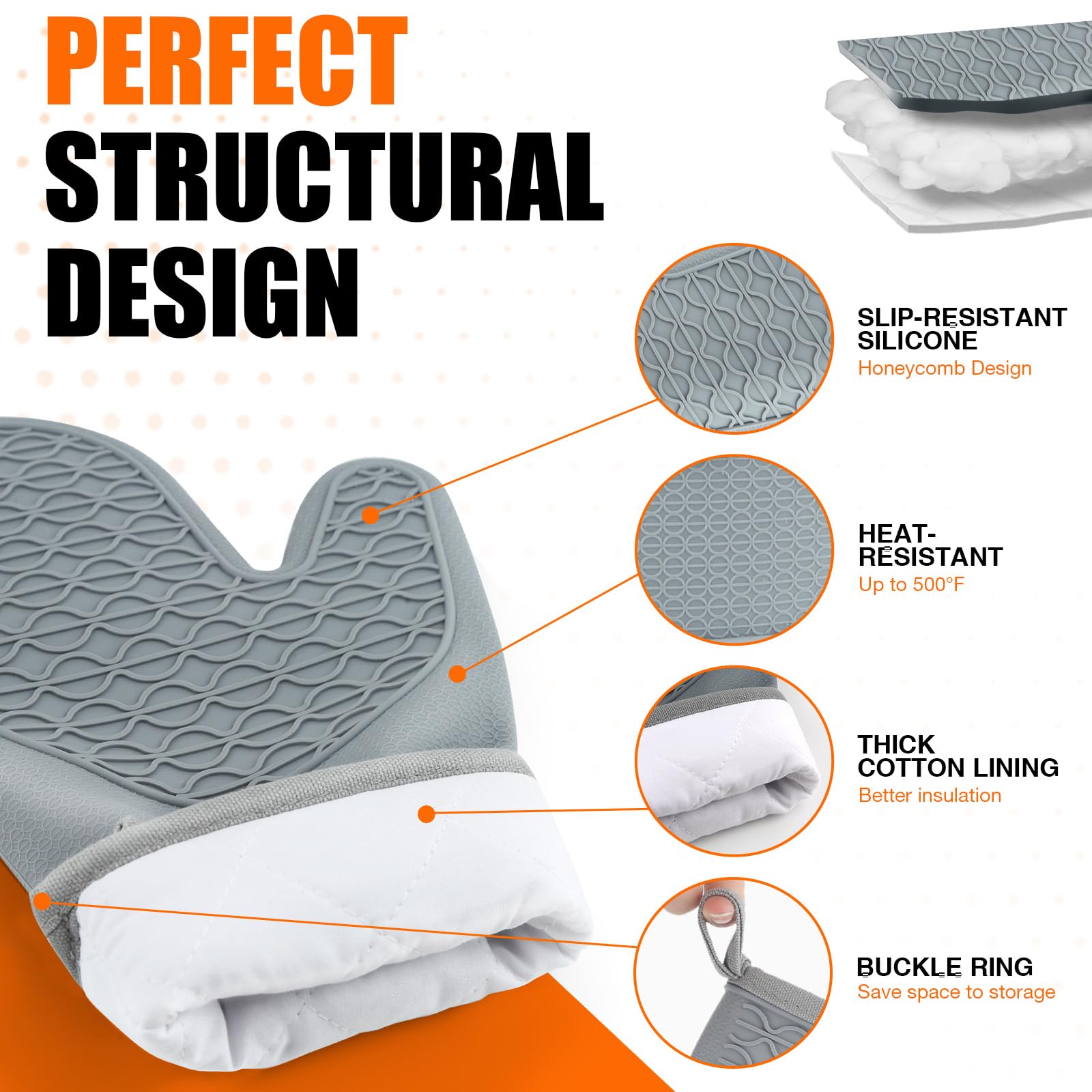š§¤ćNON-SLIP CRIPćThe oven mitts feature a textured, non-slip surface that enhances your grip and control when handling hot items. This provides you with a secure hold, reducing the risk of accidental slips or drops while transferring dishes from the oven or stovetop.