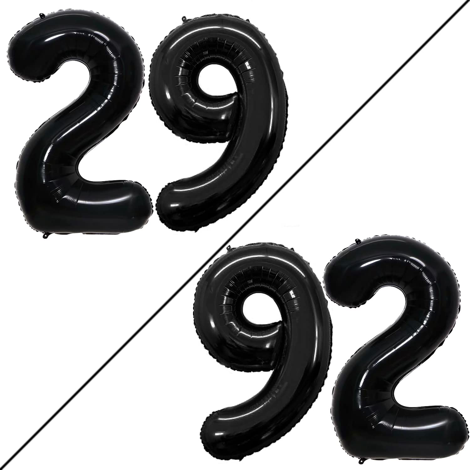 GOER 42 Inch Helium Foil Number 29/92 Balloons for 29th 92nd Birthday Party Decorations and Anniversary Event,Perfectly Decorate Your Party and Giving a Deep Impression to Everyone> Features: Made of food grade material,safe and non-toxic Polymer double-layer thickening anti-explosion material.Light and sturdy, just fill with 90% helium to float Color uniform and beautiful,even can be used as a mirror Can be reused,use the straw to deflated balloons after party end Package Includes: Number 2 and 9 Balloons,NO HELIUM COME WITH THESE BALLOONS Straw*1 How to Use Foil Balloons: Inflate slowly,just fill 90% of the balloons'space that could allows the balloon to expand completely