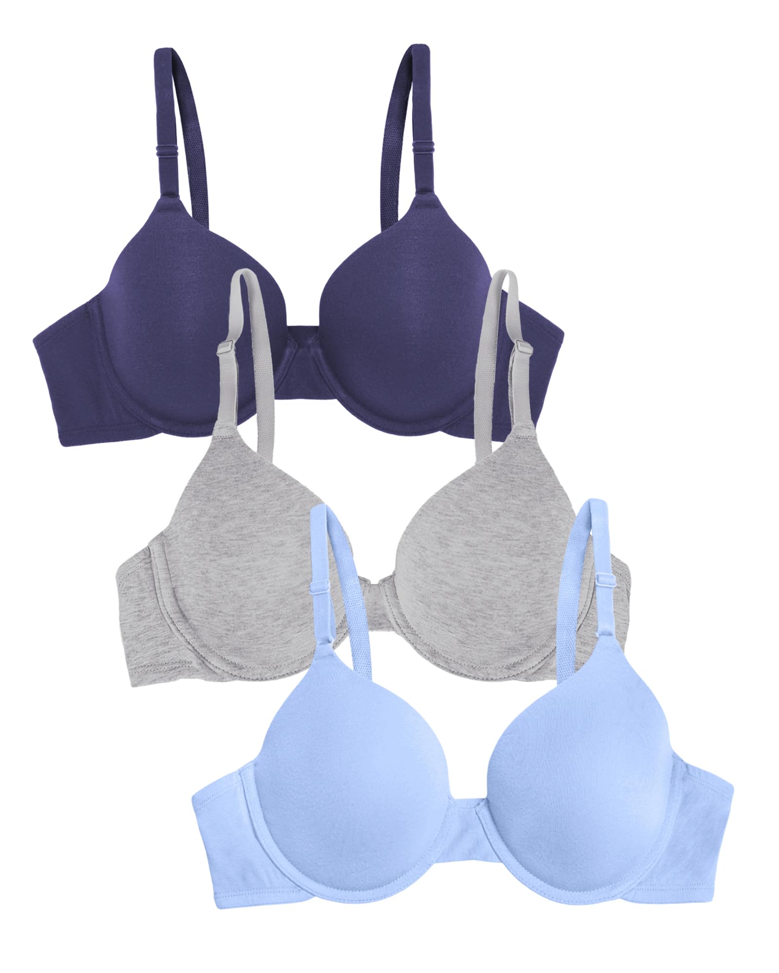 Description The Fruit of the Loom women's 3-pack T-shirt bra is your new favorite no show bra. The smooth, lightly lined cups are invisible under shirts, but one thing you won't be able to hide is your confidence. This full coverage bra is designed with thick adjustable straps and underwire for all-day comfort and support. Fruit of the Loom has been one of America's most trusted brands for over 160 years. We promise to deliver quality undergarments at an affordable price, always. Start everyday happy with Fruit of the Loom.