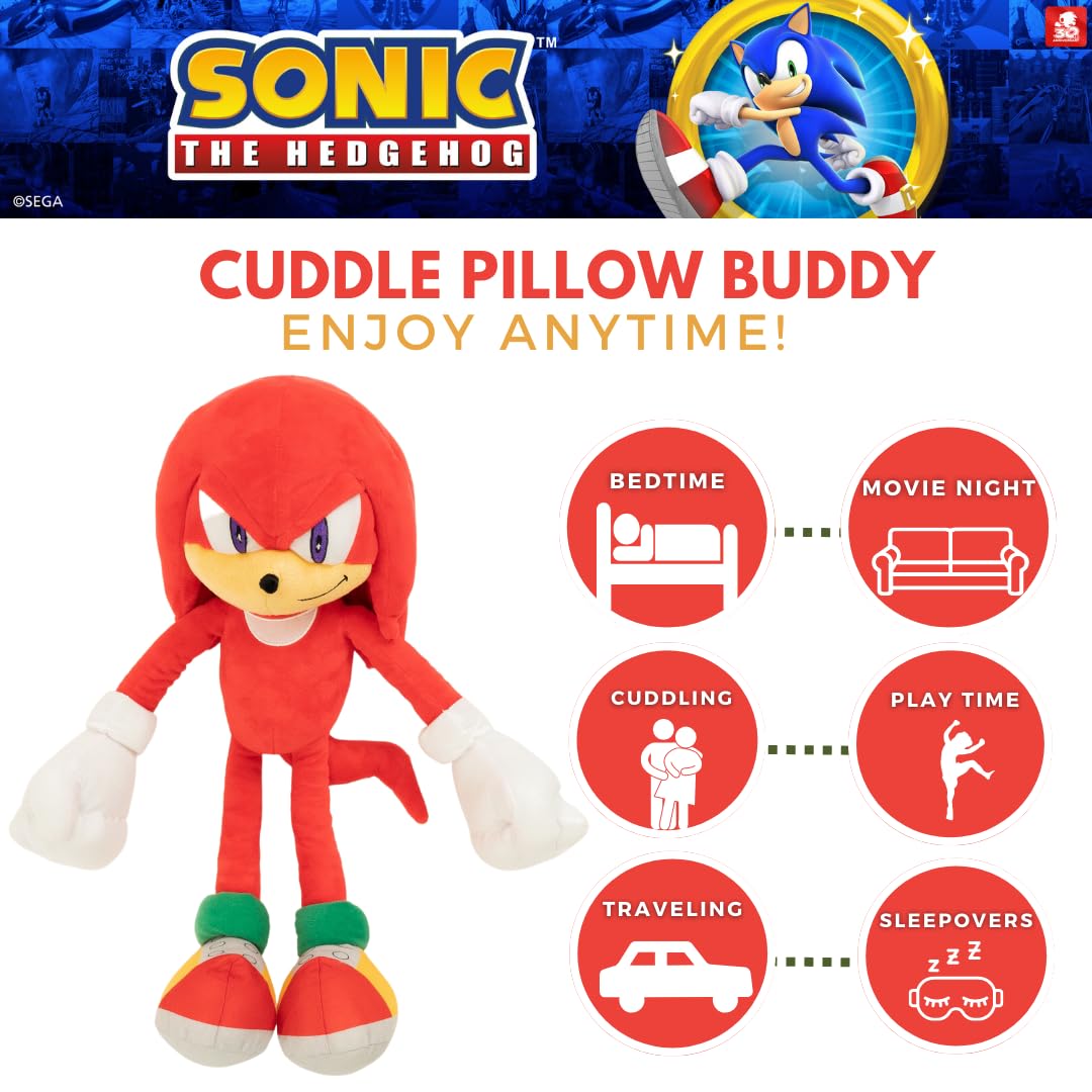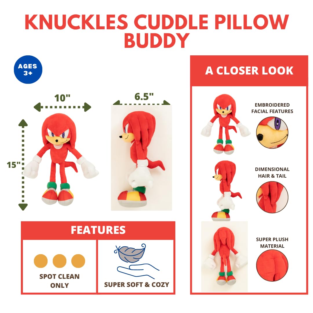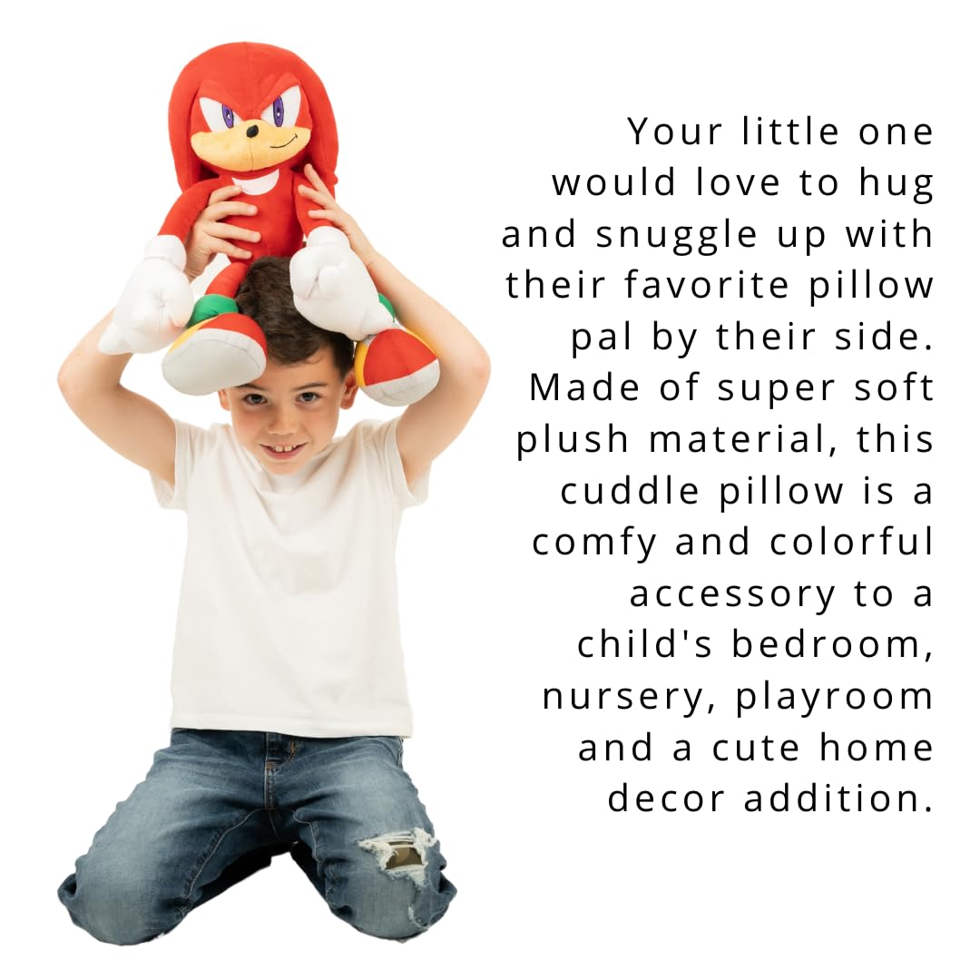 SONIC KNUCKLES DESIGN: Fans of the Sonic the Hedgehog video games and movies will love to snuggle this adorable Knuckles-shaped cuddle pillow. Knuckles comes to life with this plush three-dimensional character pillow perfect for your little gamer.