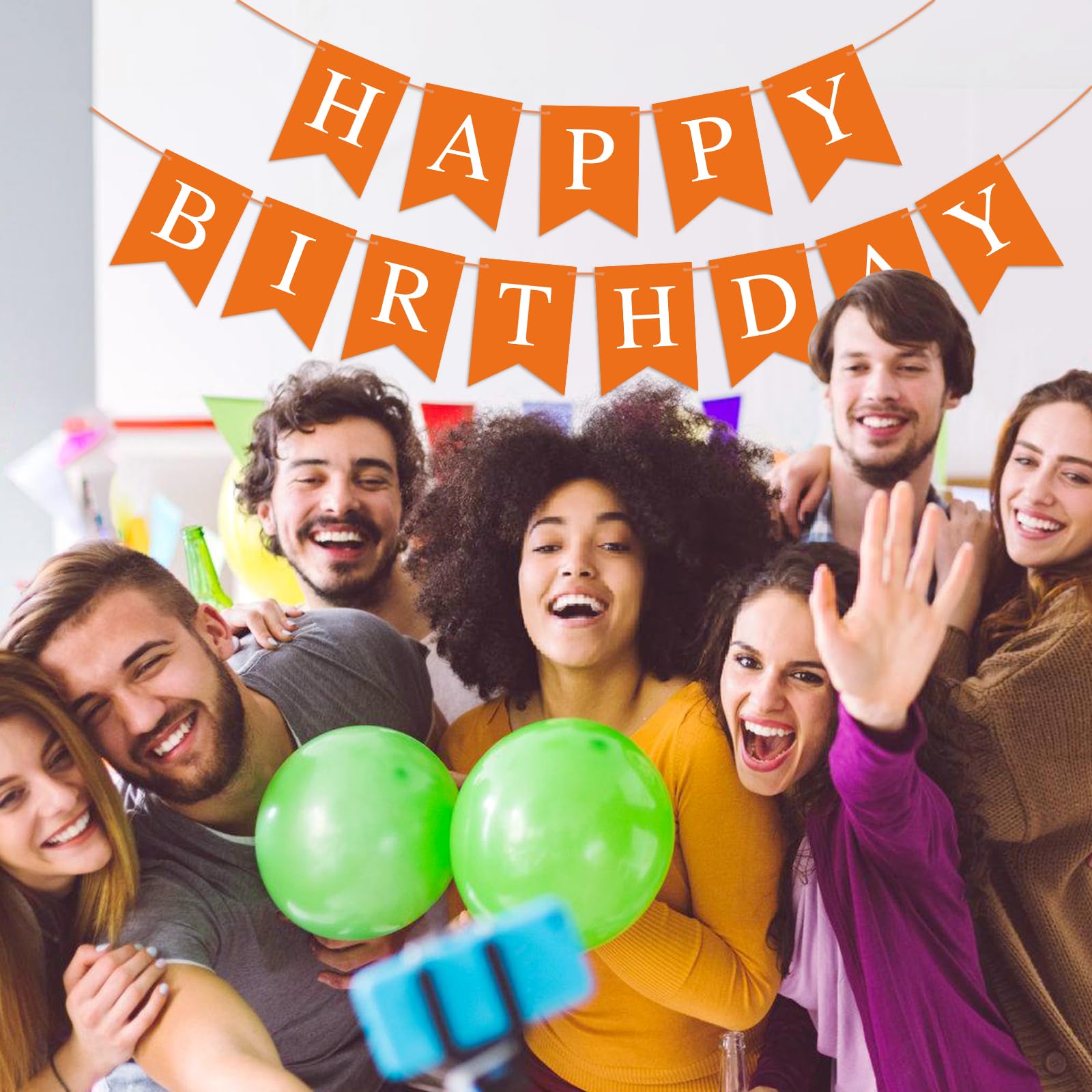 HIGH QUALITY: Made of high-quality ECO-Friendly paper, resistant and reusable. Lovelyand lively colors add luster to the space decoration. Happy birthday, banner orange easily fit any wall, fireplace, gift table, buffet table, garden, living room, family room, banquet hall, indoor or outdoor.
