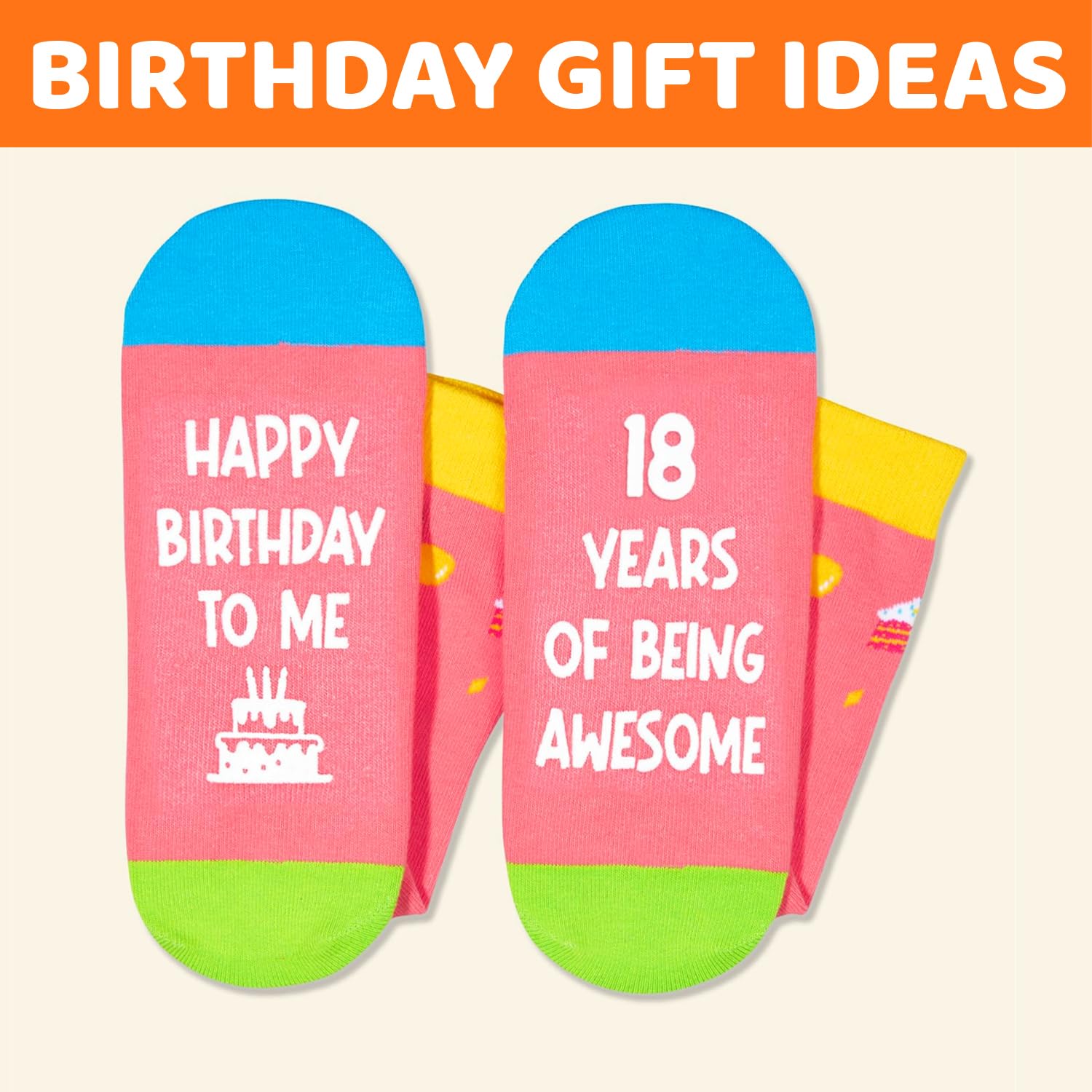 18TH BIRTHDAY GIFTS FOR GRIL: These pink "HAPPY BIRTHDAY TO ME, 18 YEARS OF BEING AWESOME" socks are perfect for teen girls.