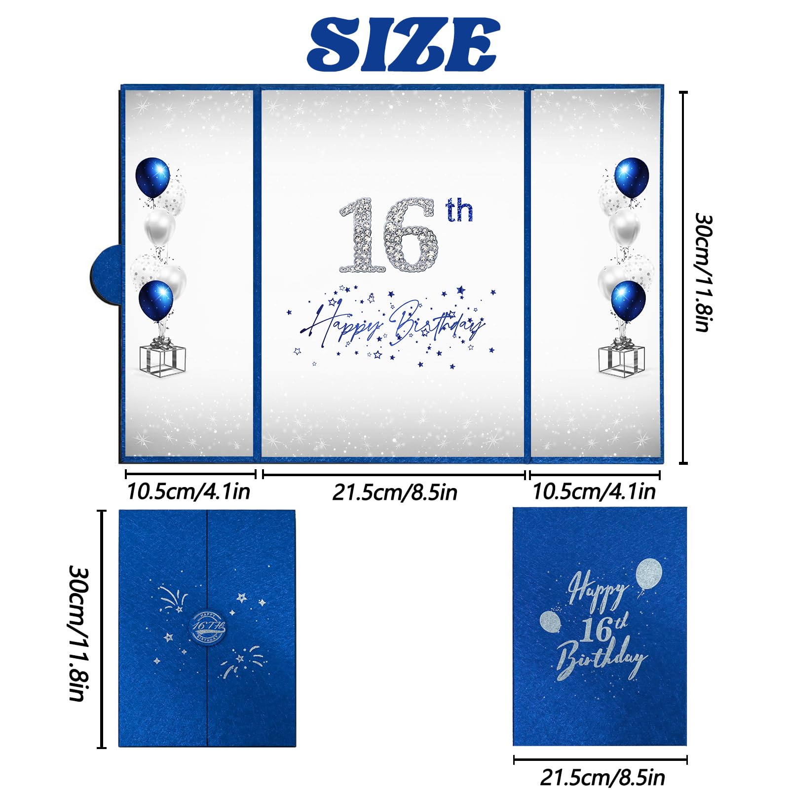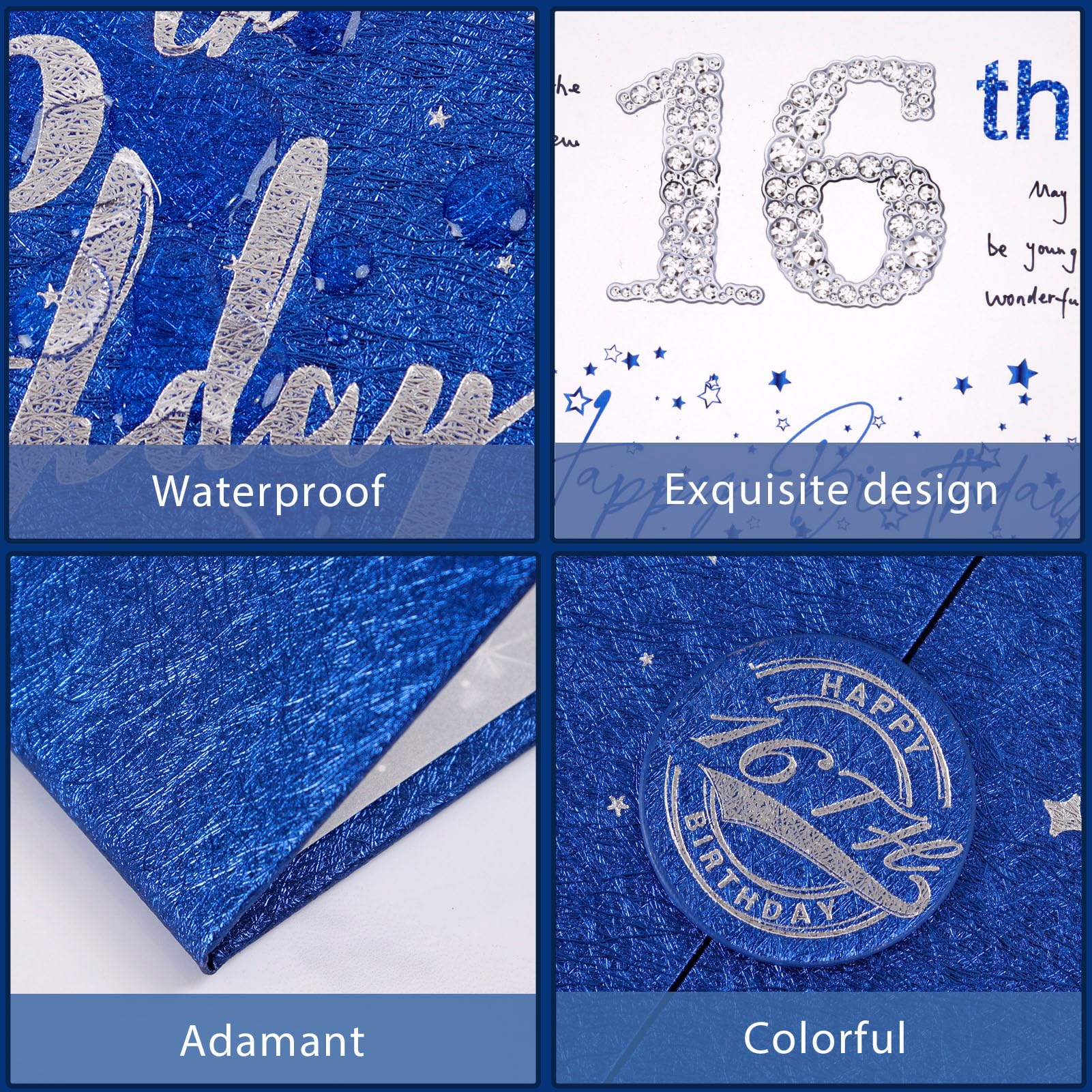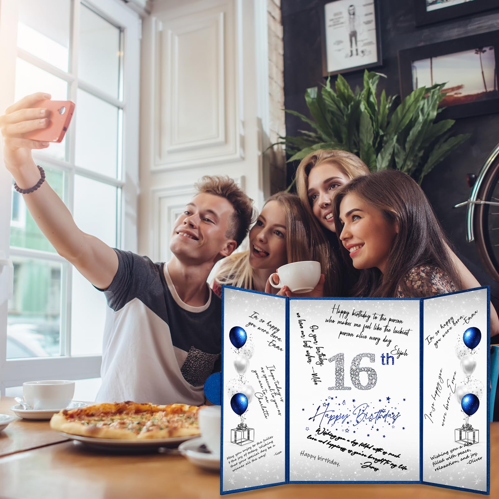 【Exquisite Design】- The blue and silver certificate has a gilded badge on the cover, and the inside of the signature certificate is divided into three parts, the middle page is printed with the message '16th Happy Birthday'. This 16th birthday signature board can be opened directly and stand on the table. Tips: No pen.