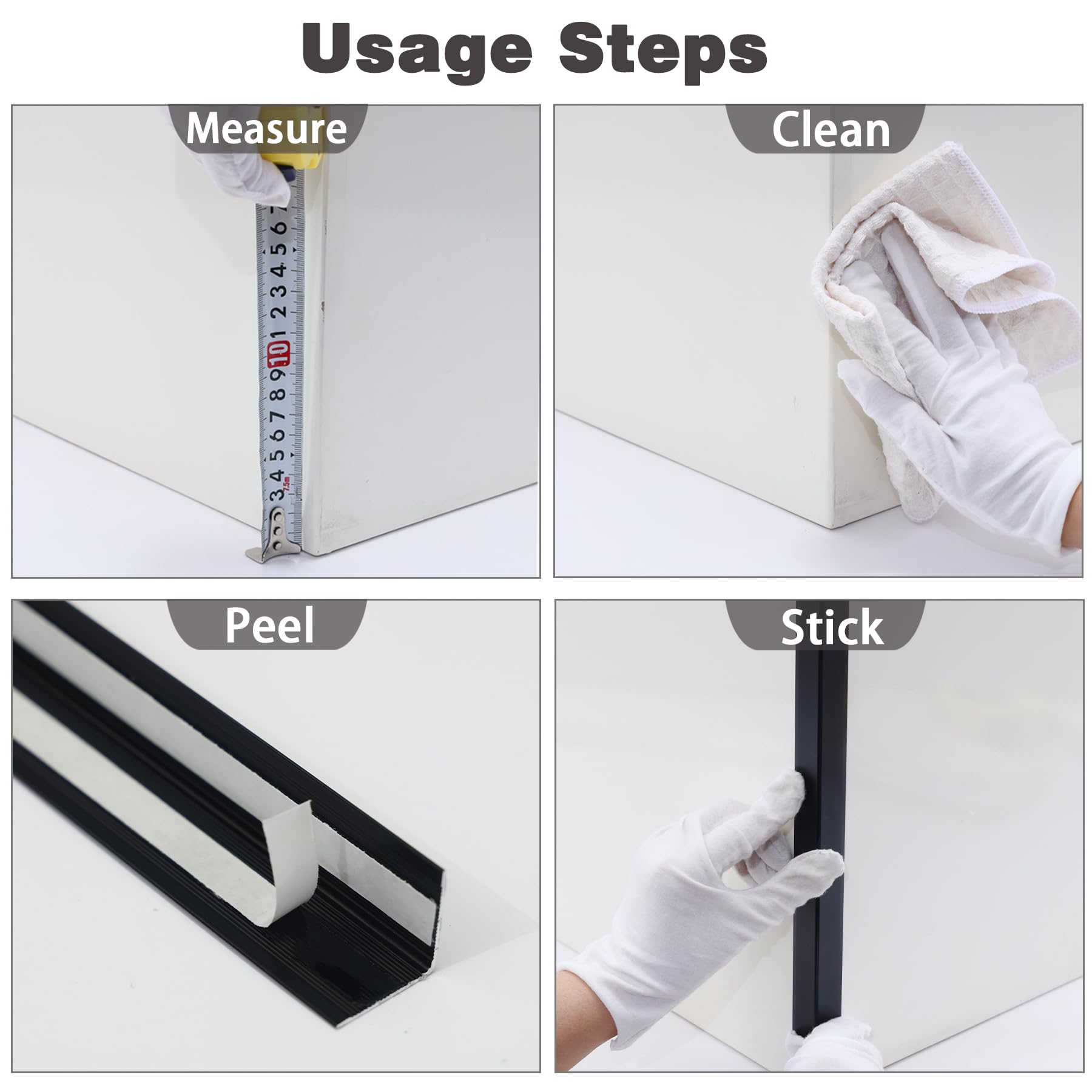 Easy Installation: Installing our aluminum corner protectors is a breeze. Simply peel off the adhesive strip on the back of the metal strip, then stick it onto the wall corner. Press it tightly to ensure a secure installation. It's a quick and hassle-free process.
