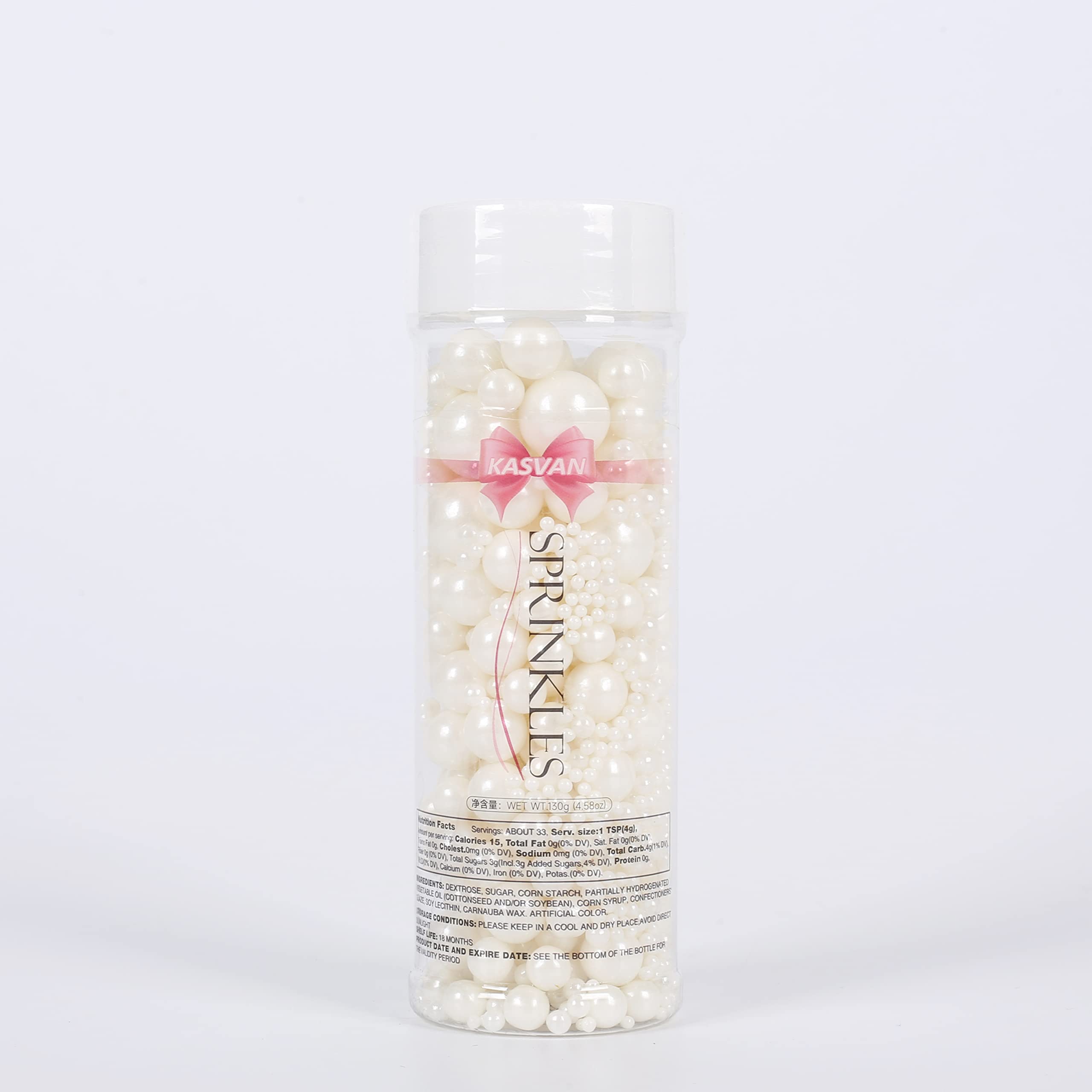 ✨PACKAGE INCLUDES: 1 edible bottle of white pearl sugar, 130g/4.58 oz. The main ingredients of sugar pearls are: sugar, beetroot, spirulina, carnauba wax, gluten free, nut free.