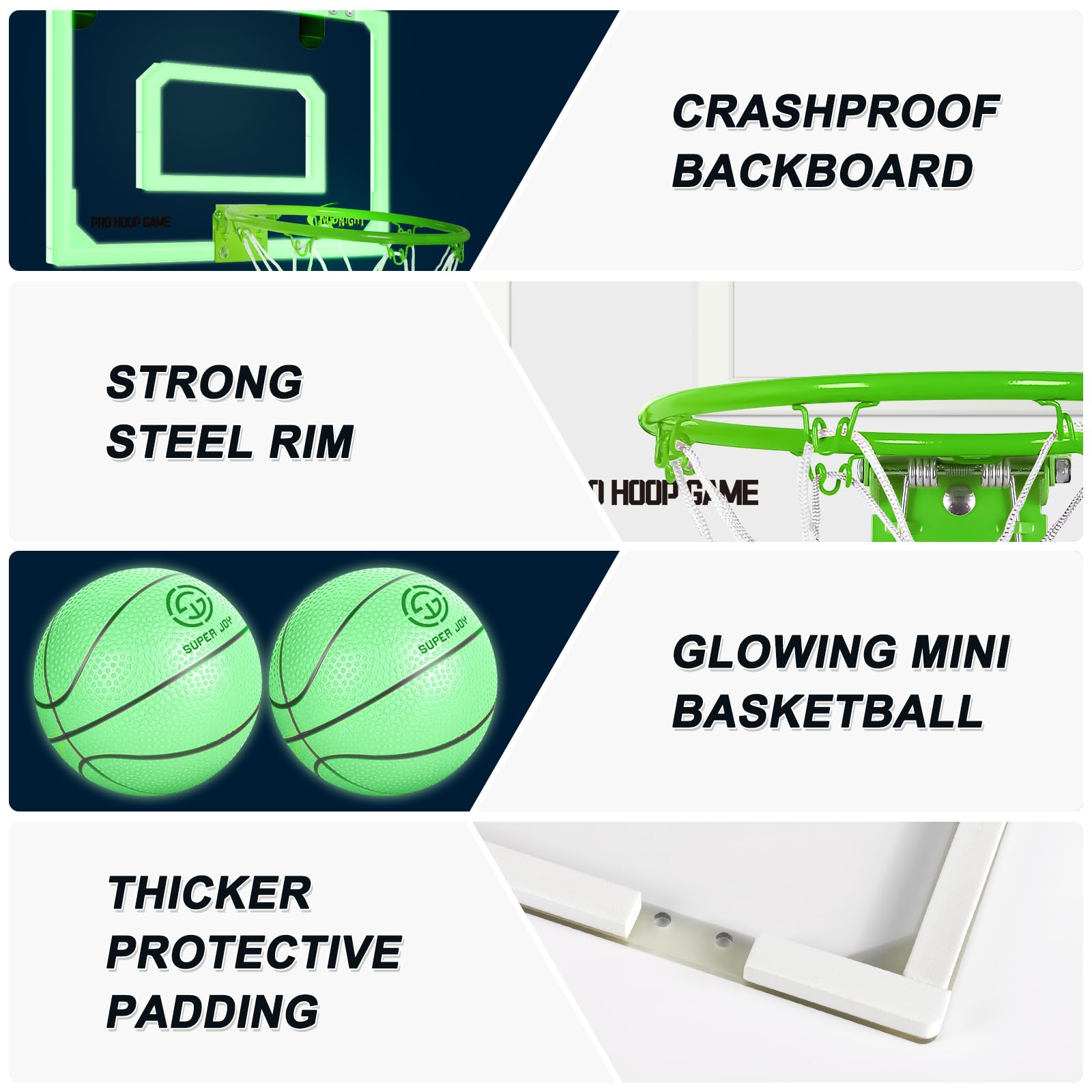 πSporty Boys Room Decor:Our SUPER JOY mini basketball hoops allow you to enjoy the fun of playing basketball even at night! Expose the basket to the sun for 15 to 30 minutes before use, and it will become brighter.
