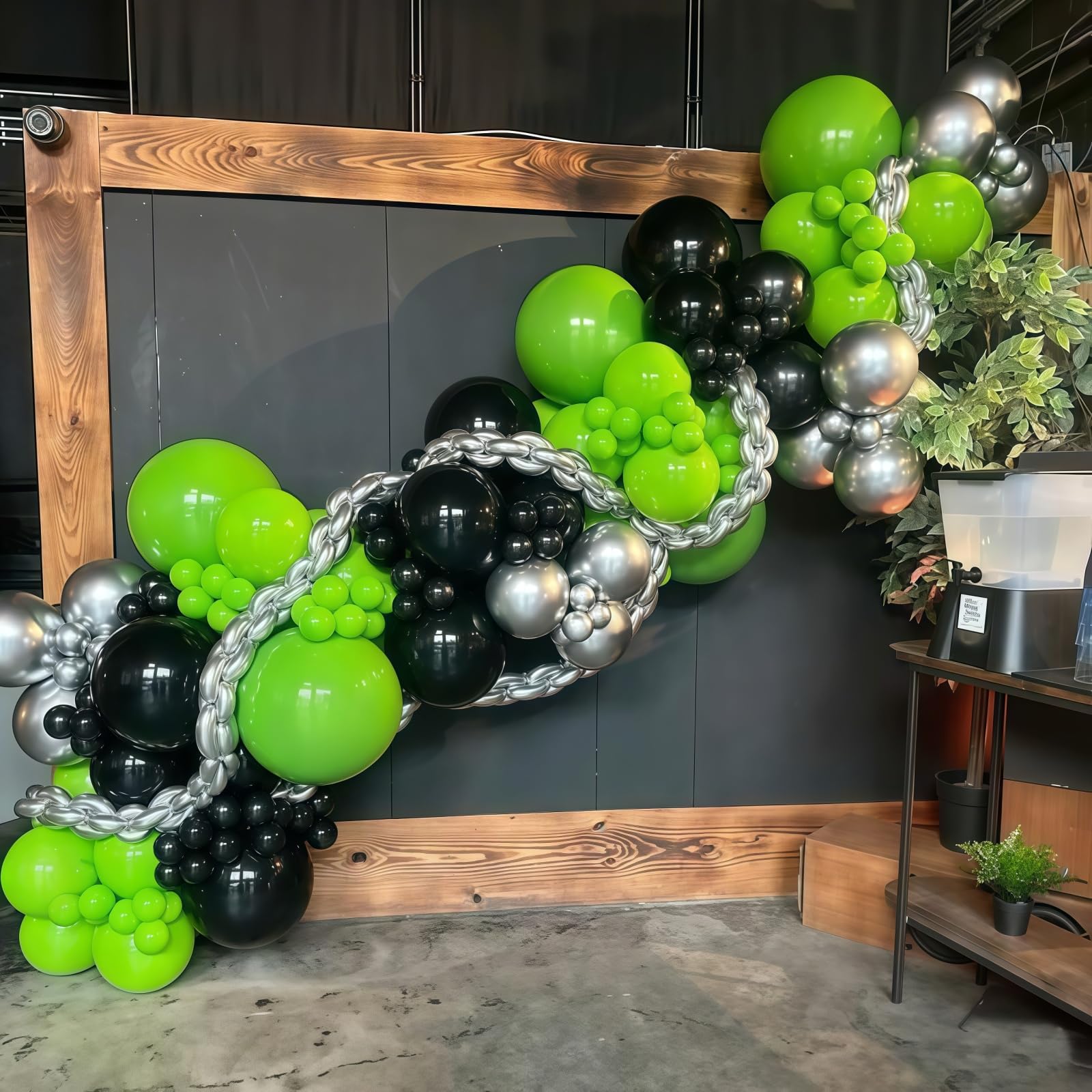 This corporate events balloons set is an ideal choice for your party. It not only provides rich colors and creative decoration options for your event, but also enhances the overall atmosphere in details, bringing a different experience to your family and friends! π Quantity: 35 Pieces π Material: Natural Latex π Size: 12 inch π Accessories: Balloon Ribbon π Color: Neon Green / Black / Chrome Metallic Light Green / Chrome Silver Balloons π Inflatable: Both air and helium supported. Easy to Use: You can use a manual pumps and electric pumps or with a mouth to inflate balloons. π Great for: Birthday, baby shower, video game theme party, jungle theme party, new year, corporate events, christmas, halloween, prom, graduation, business, photo shoot backdrop decorations. Please Note ! β If you are allergic to latex, please avoid using latex balloons. β For children, latex balloons should be used under adult supervision. β Avoid direct sunlight, high temperatures, sharp objects and excessive friction. β Please Note there are measured manually with deviation at 1-3pcs, please kindly understand.