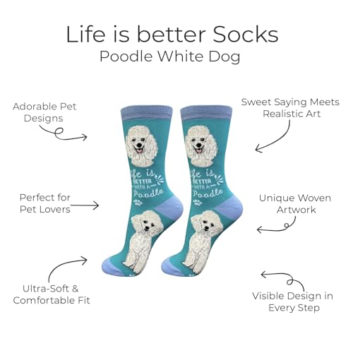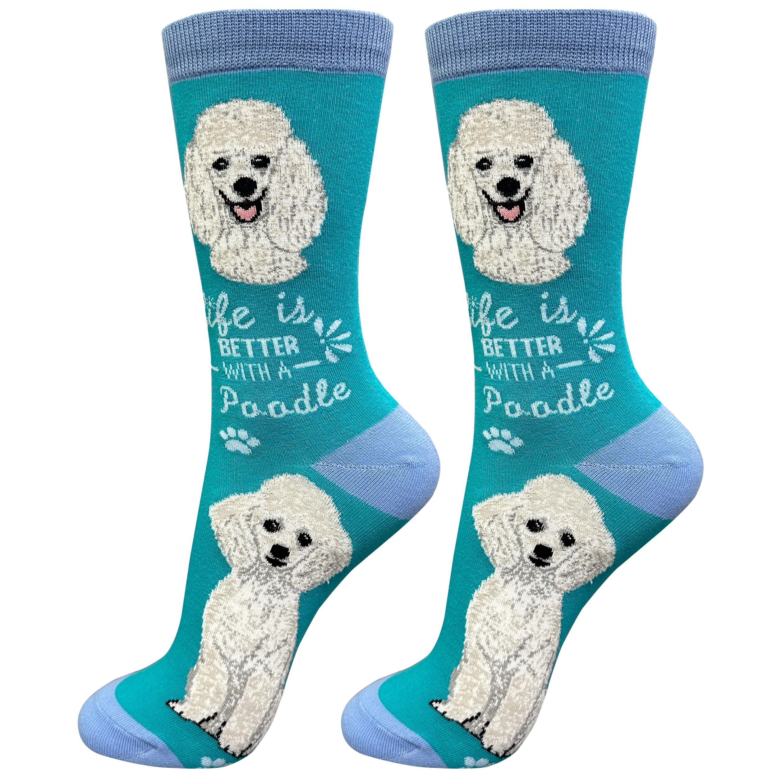 Description Introducing our collection of adorable and vibrant pet lover socks designed exclusively for pet lovers! These funny socks are the epitome of cuteness and novelty, guaranteed to bring a smile to your face. Big image of dog head woven on both sides on the socks and full body image woven on the bottom of the socks with a cute saying that says life is better with Dog. These socks are made in South Korea, These funny socks are made from 200 needle count machines which give life-like detail of your favorite pet. Step up your sock game with our adorable and hilarious Dog Socks, designed especially for pet lovers! These novelty socks are the perfect addition to your collection, featuring cute and silly designs that are bound to make you smile. Made with high-quality materials, these fun socks offer both comfort and style. They add a playful and fashionable touch to your everyday outfits, whether you're dressing up or keeping it casual. Whether you're a dog mom, a dog dad, or simply a dog lover, these socks are a must-have. With their delightful designs and comfortable fit, these socks are a fashionable treat for pet lovers and make great novelty gifts and dog mom gifts.