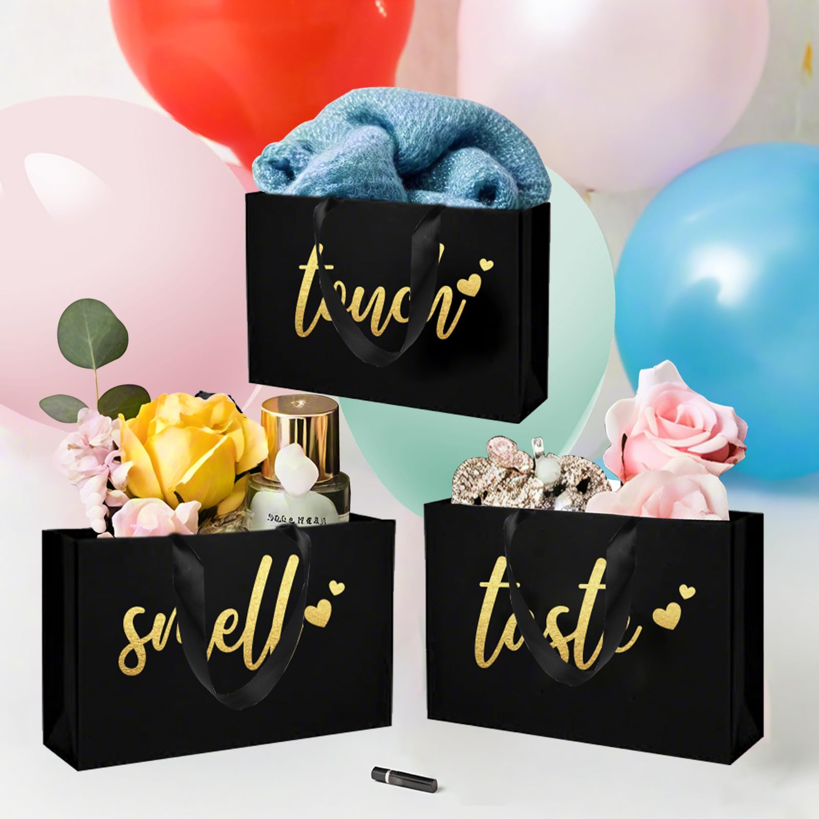 Elevate your gift-giving experiences: this 5 senses gift tags set includes everything you need to elevate your gift-giving experience, each bags featuring with elegant golden letters, celebrate your loved one’s special day with these sweet 5 sense gift bags