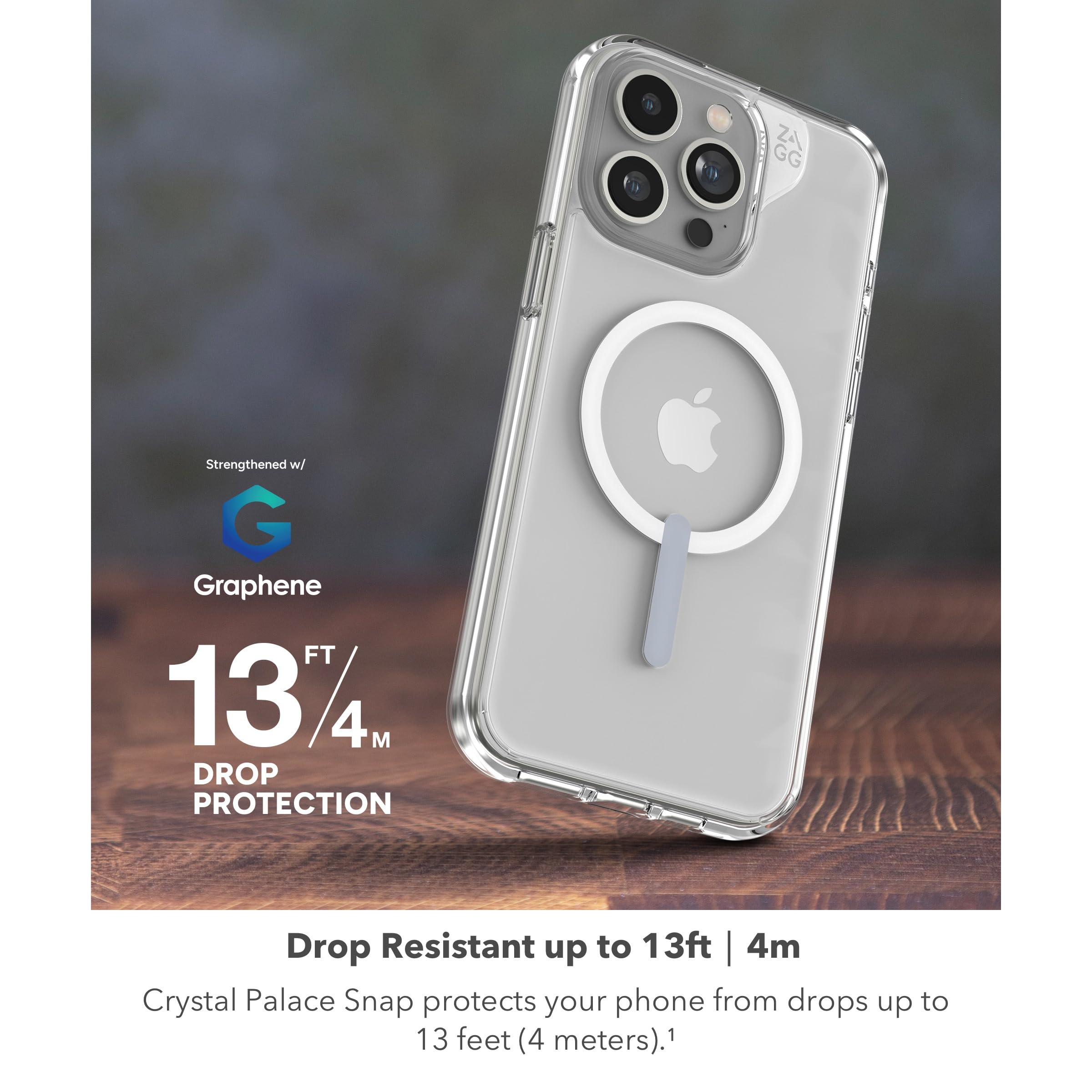ULTIMATE IMPACT PROTECTION - Made of crystal clear scratch-resistant Graphene, one of the hardest materials on earth, the ZAGG Crystal Palace Snap Case for iPhone 15 is an extremely protective clear case with drop resistance of up to 13 feet (4m)