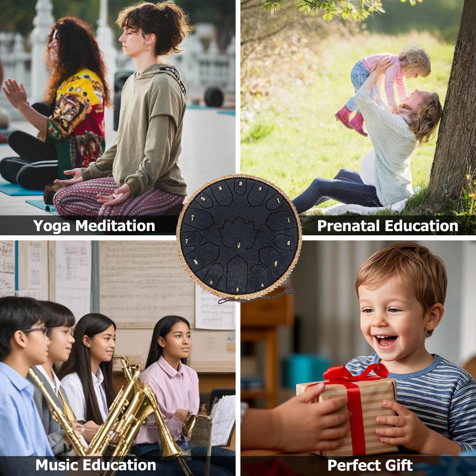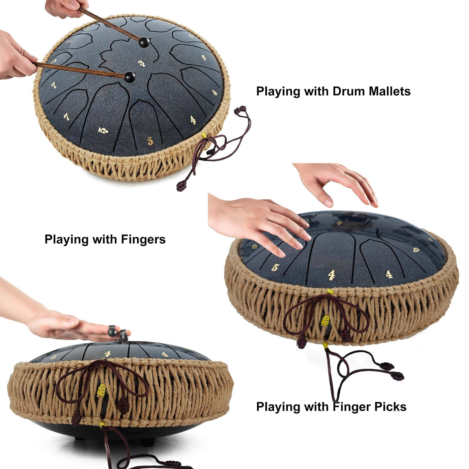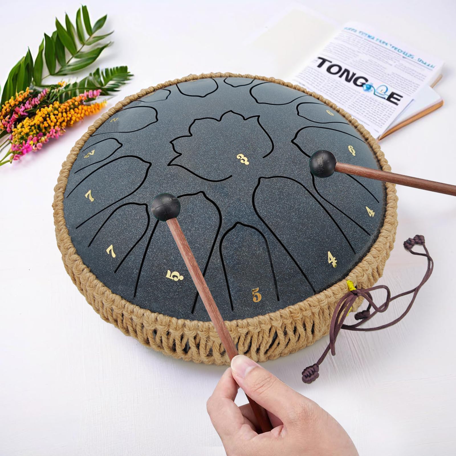 Easy to Play, No Experience Needed – Ideal for beginners, this drum includes mallets, a music book, and note stickers to help you get started quickly. Within minutes, you'll be playing beautiful melodies, no prior experience necessary