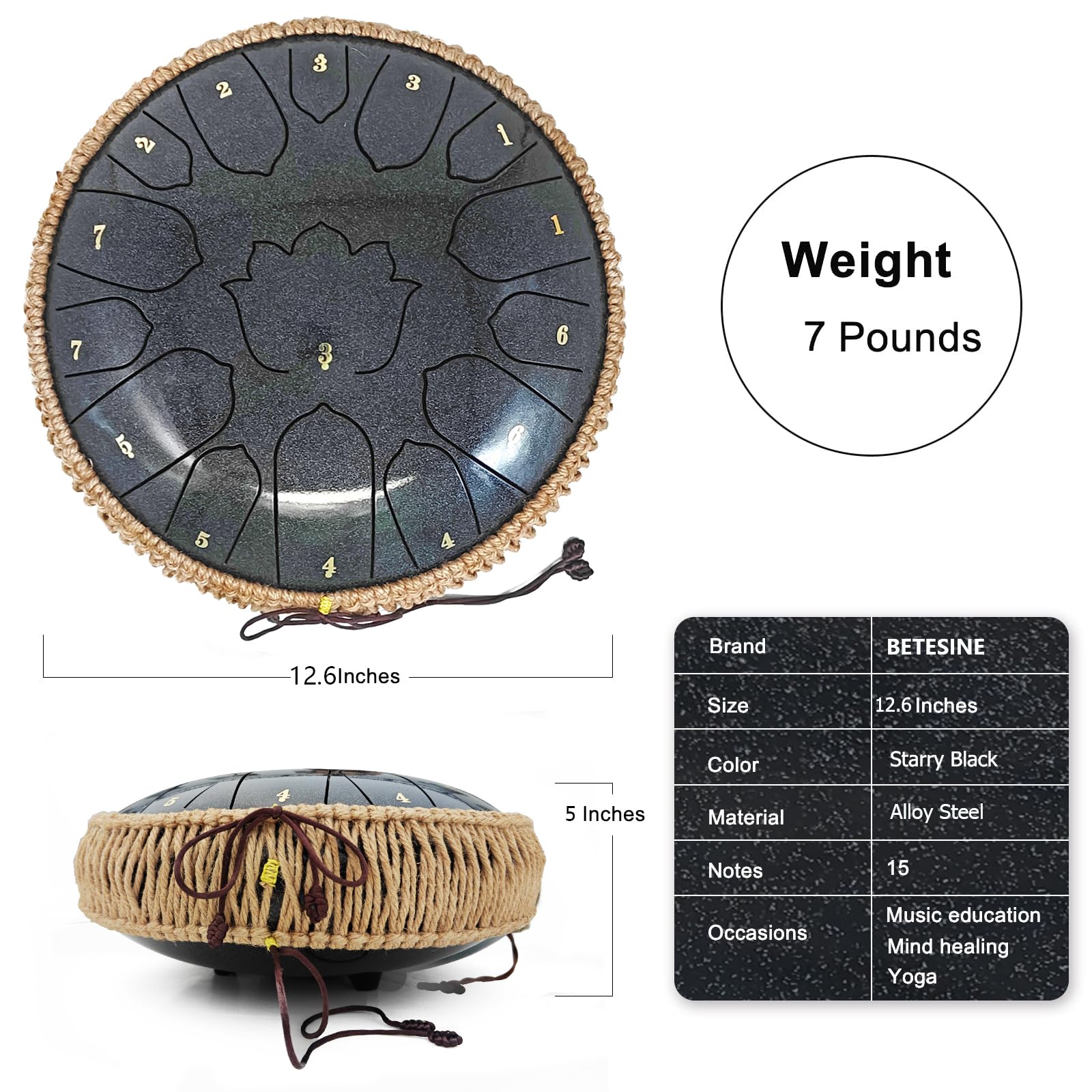 Rich, Harmonious Melodies with 15 Notes – Create beautiful, calming tunes with 15 precisely tuned notes in C Major. Whether you're a beginner or an experienced musician, this steel tongue drum makes it easy to produce relaxing, soulful sounds