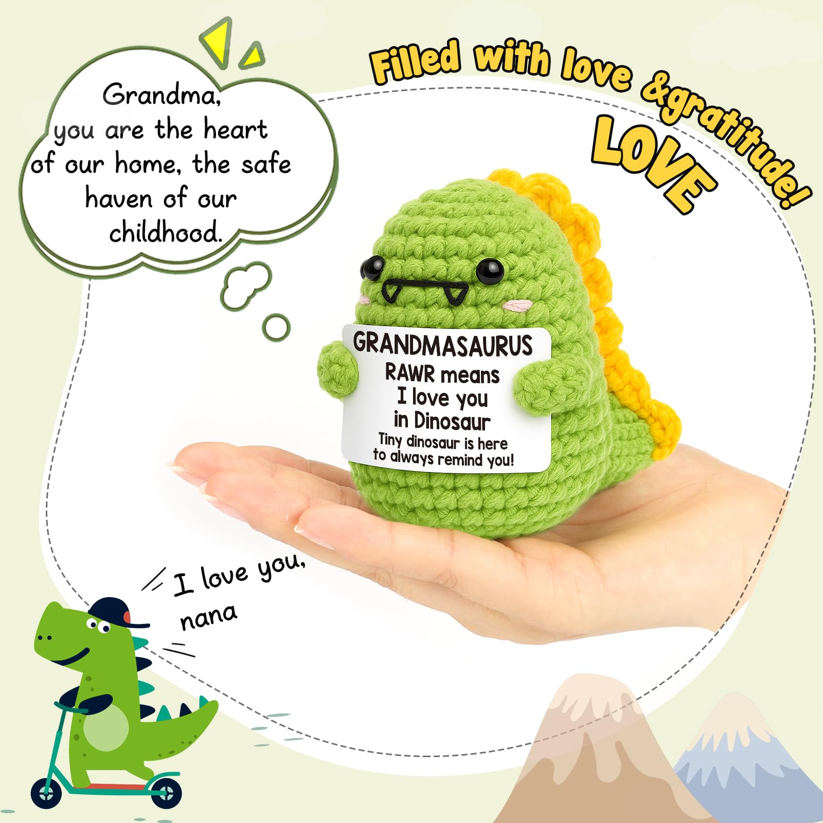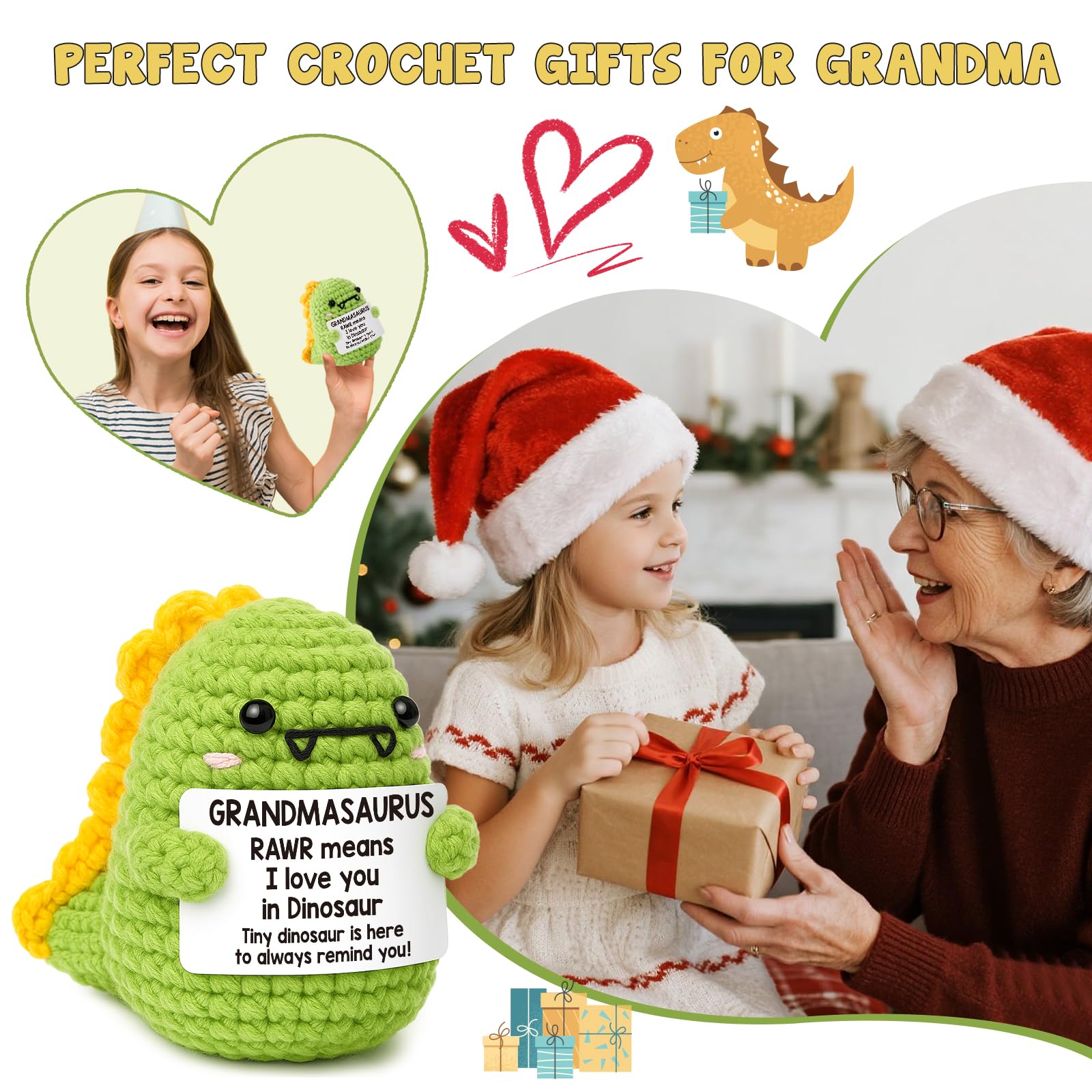 【Grandma Saurus’ Cozy Christmas Hug】 This holiday season, surprise Grandma with a heartfelt handmade Christmas gift for grandma, great grandma, Nana, or Gigi. More than a cute knitted dinosaur, this sentimental Christmas keepsake carries love, warmth, and gratitude. Featuring a sweet card that says “GrandmaSaurus RAWR means I love you in dinosaur,” it’s a thoughtful holiday gift for grandma that brings joy and comfort under the Christmas tree.