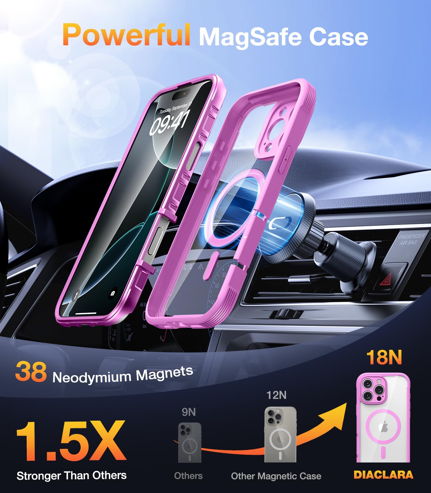 【Suitable for All Magnet Accessories】Diaclara designed for iPhone 16 pro max case built-in N52 magnetic ring that is compatible with magsafe accessories. The strong magnetism supports charging from any angle, making wireless charging faster, easier and safer. No need to worry about the charger being separated from the phone anymore.