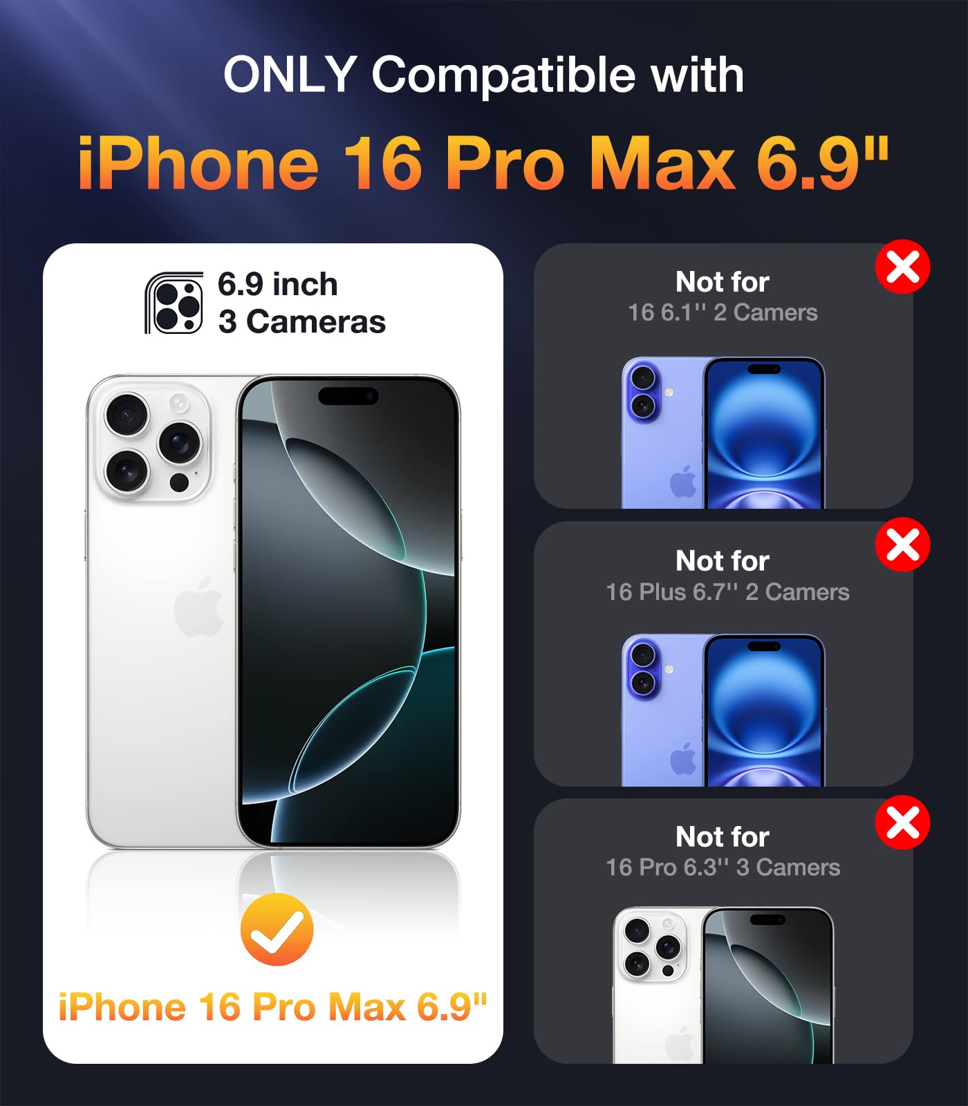【Compatibility and Support】Compatible with iPhone 16 pro max 6.9". If you have any questions about purchase, please feel free to contact us, we will bring you high quality after-sales service.