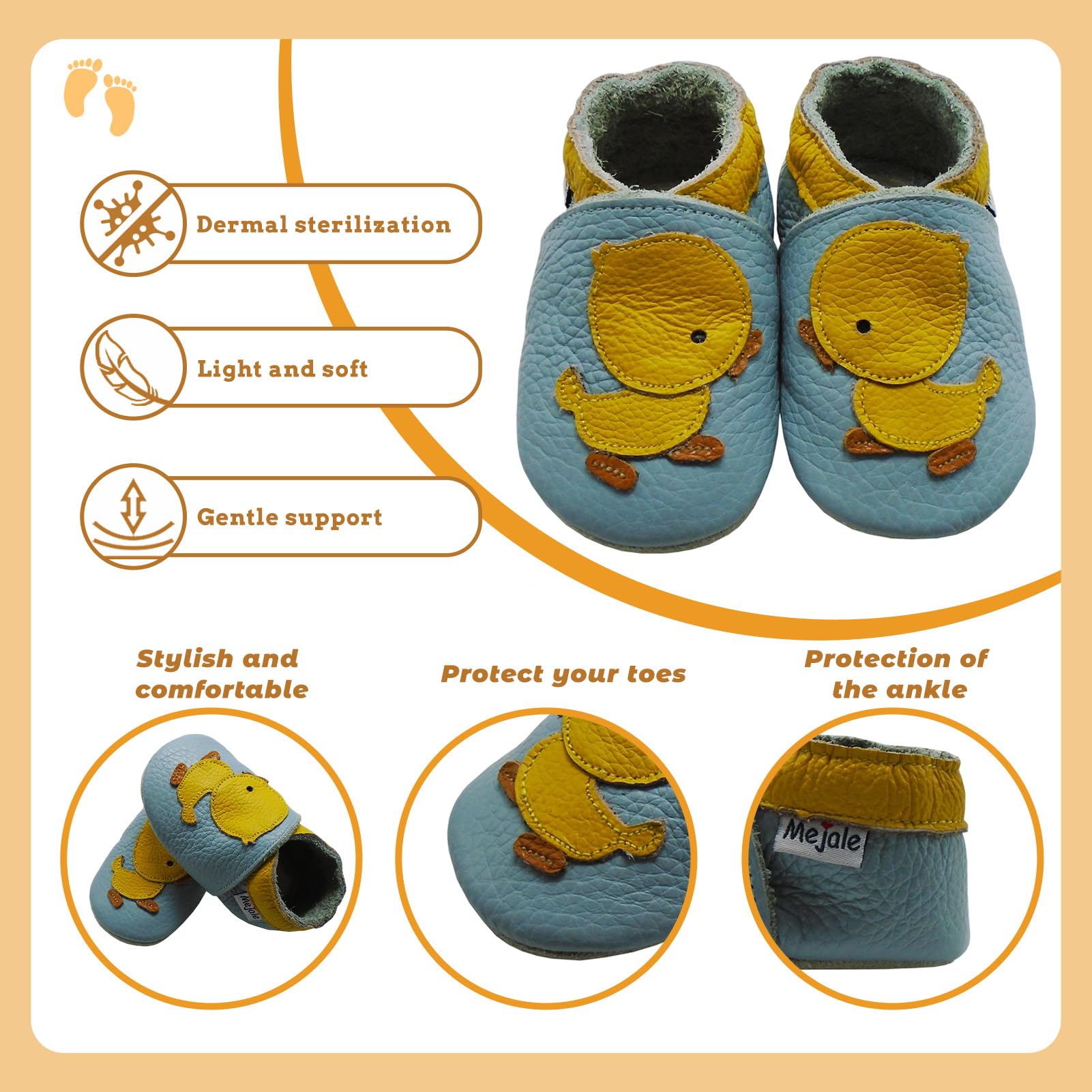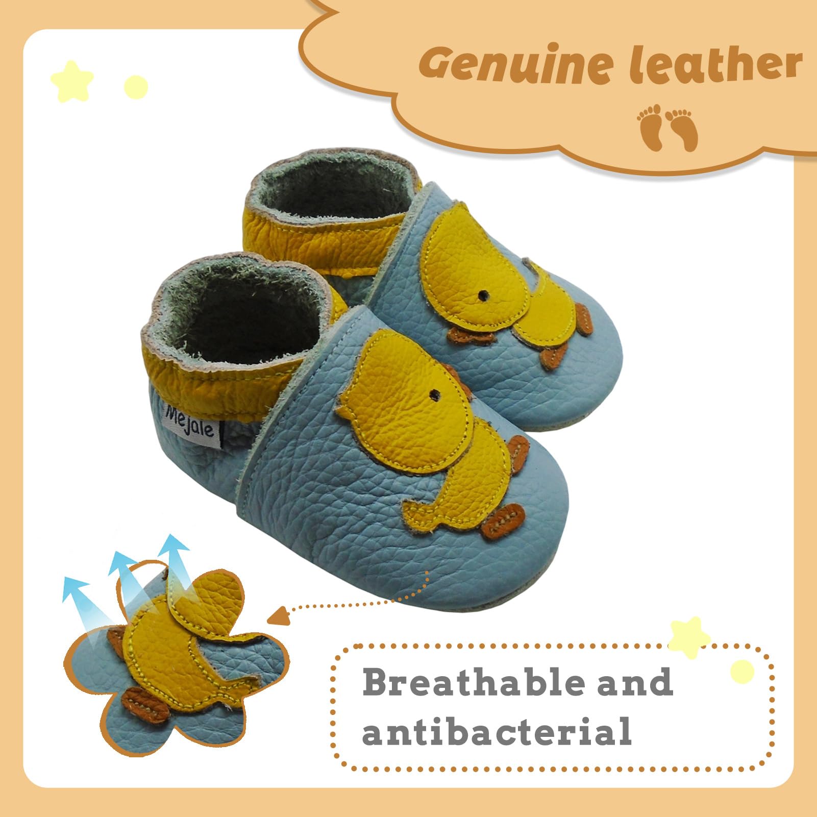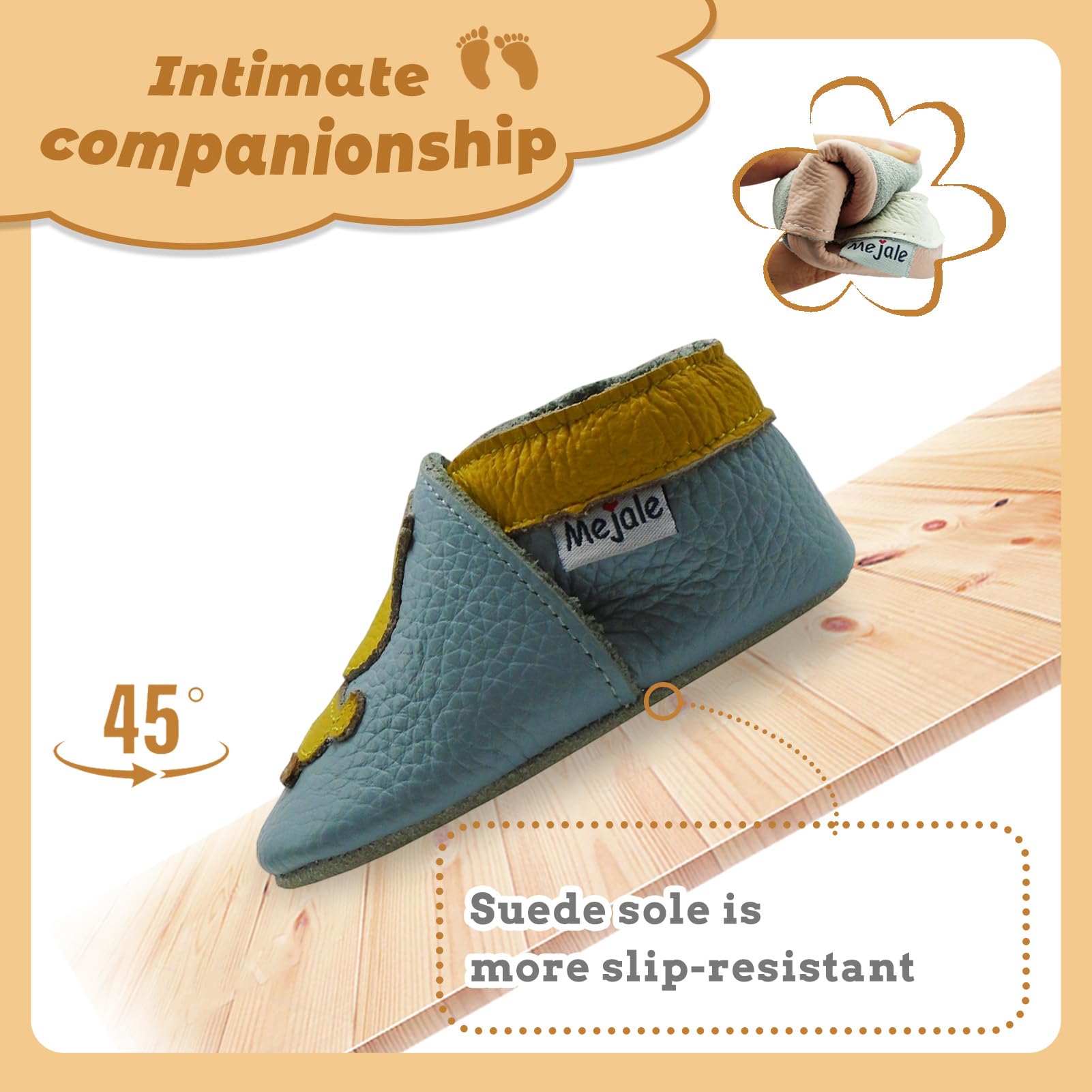 ♥Made of genuine soft Leather, slip-on shoes with elastic ankle, great shoes between a sock and a shoe for beginning crawlers and walkers. The moccasins soft leather can protect the baby's feet and enable them to learn to walk in a positive and natural manner