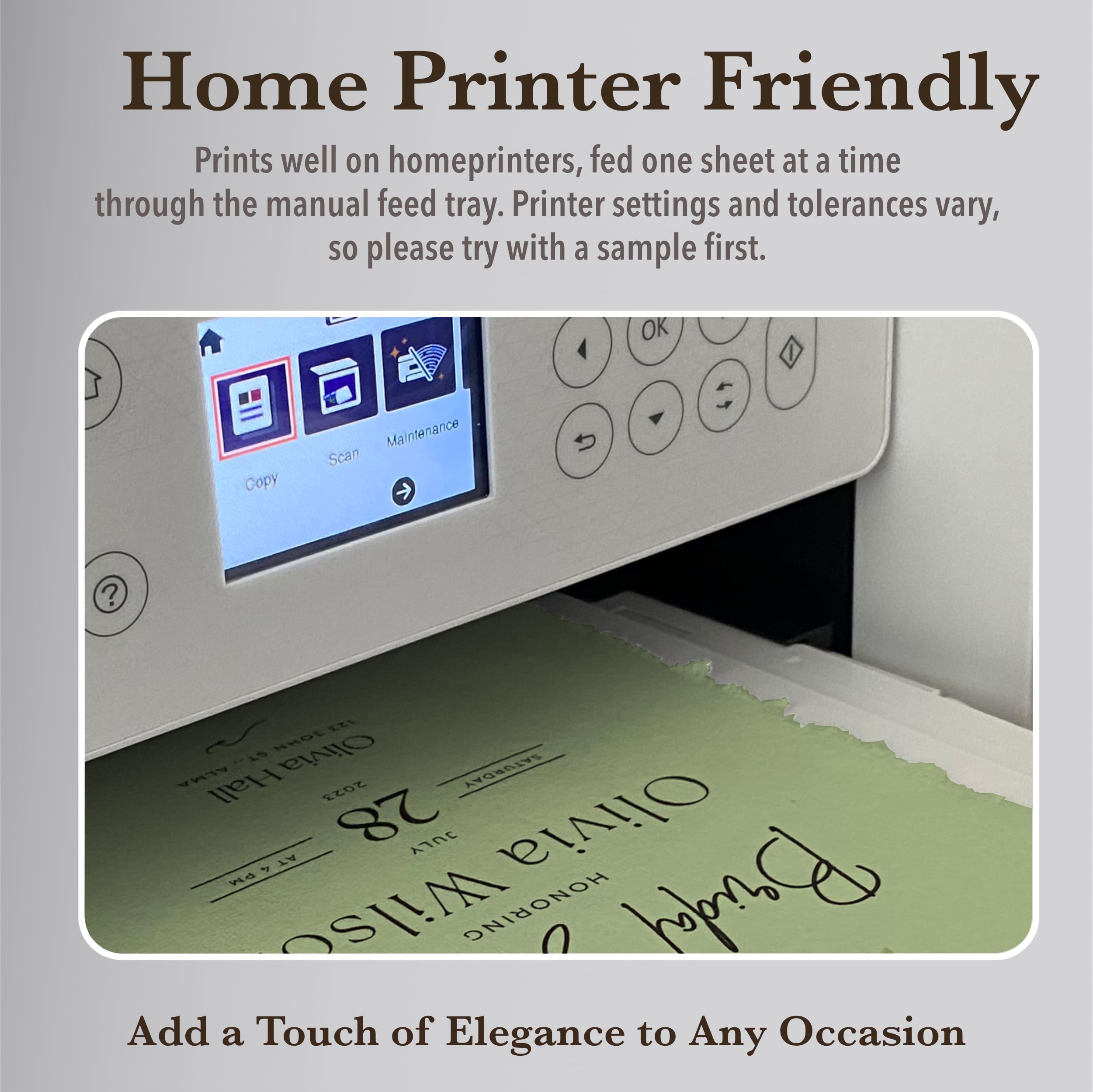[Home Printer Friendly]: Our deckled edge 150gsm paper is compatible with home printers, offering endless possibilities to make a lasting impression with creations such as menus, wedding invitations, cards, printing photos, or even books. For best results, feed one sheet at a time through the manual feed tray. As printer settings and tolerances can vary, we recommend testing with a sample first to ensure optimal print quality. 50 sheets of 10.5 x 15 cm / 4" x 6", A6 size paper. Perfect for creating cards, journal pages, and wedding invitations